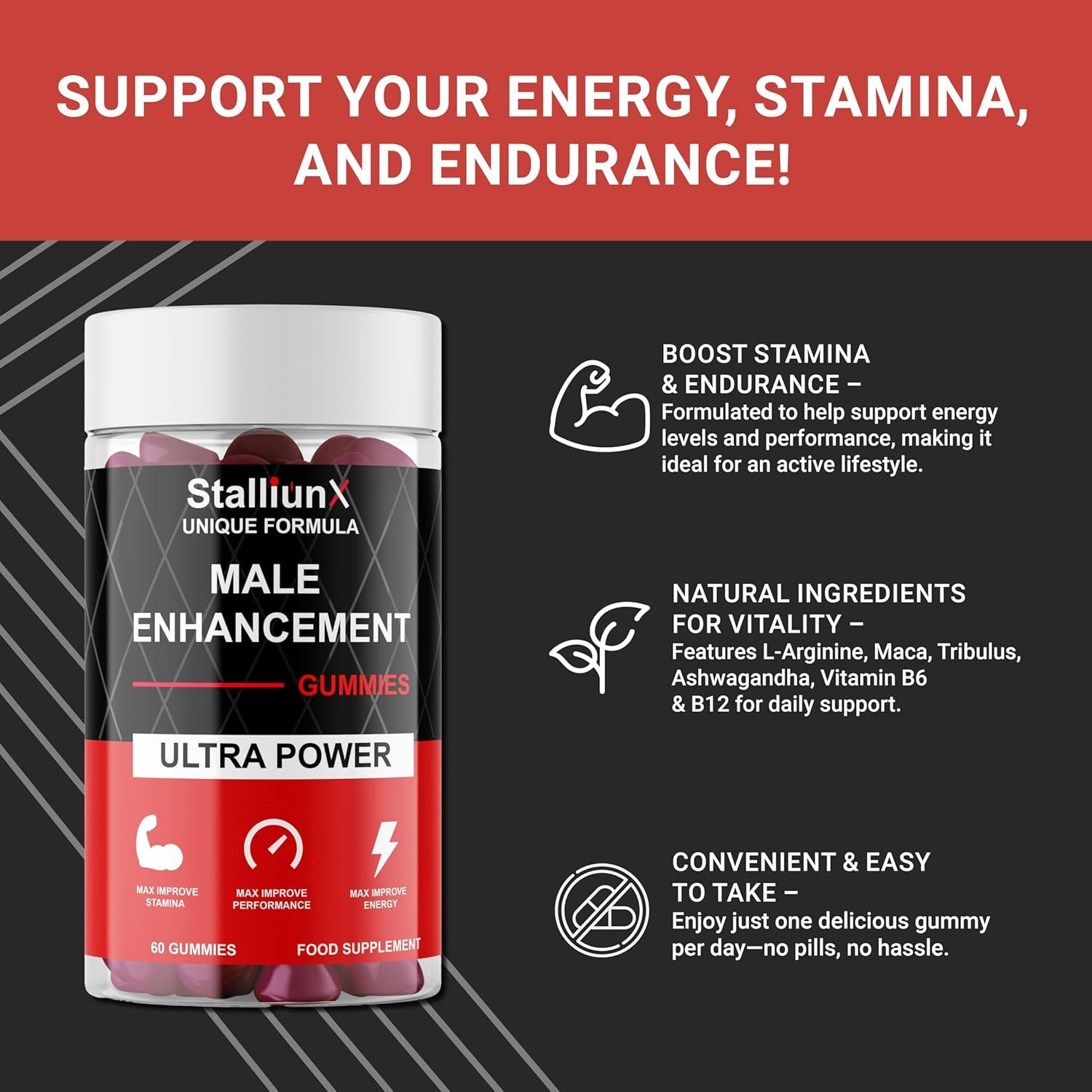 StalliunX – Men’s Wellness Gummies for Energy & Vitality, with L-Arginine, Maca & Ashwagandha, Made in The UK, GMP Certified, 60 Gummies