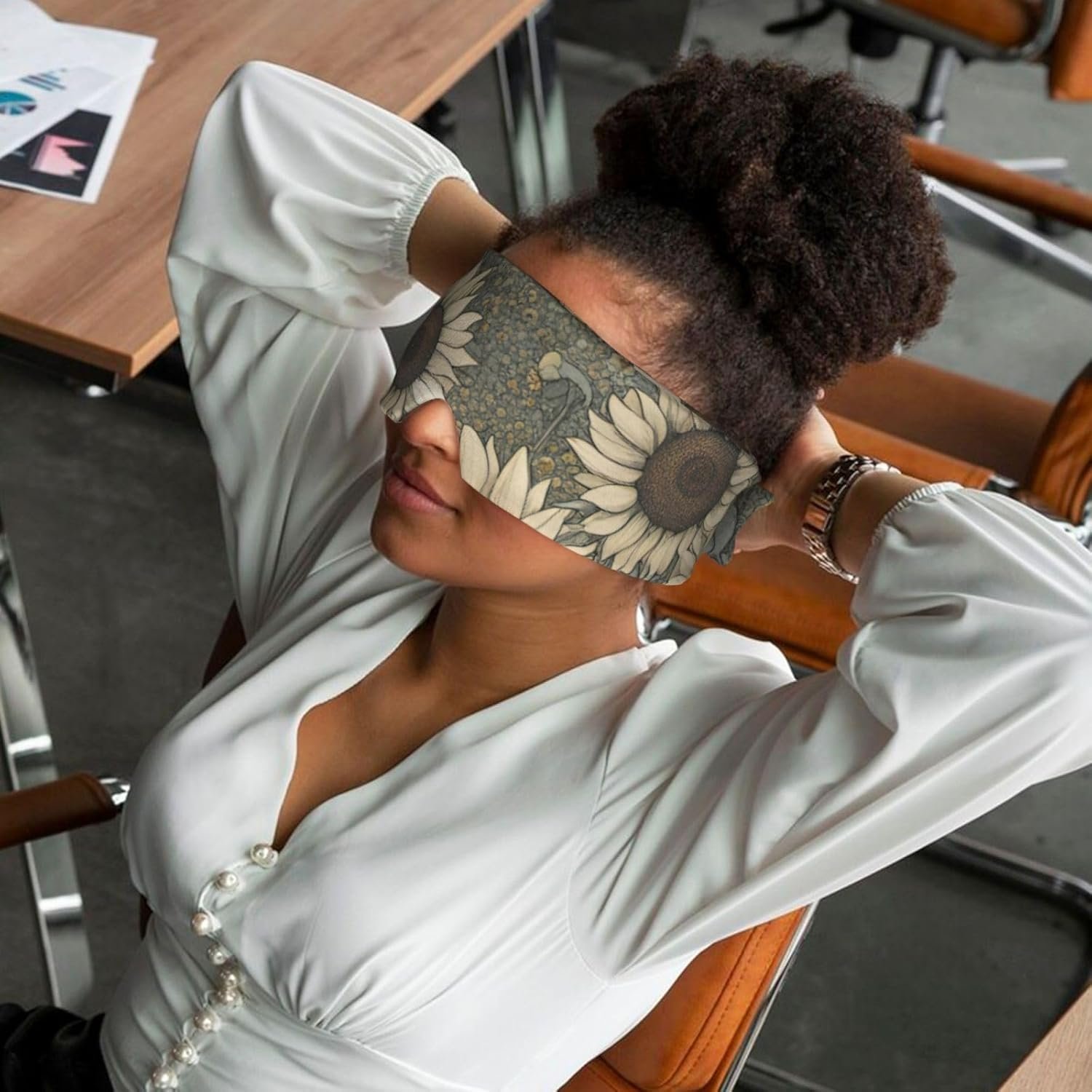 Dual-Side Use Full-Print Design: Featuring Vibrant Full-Coverage Double-Sided Prints, This Sunflowers Chamomile Print Sleep Eye And Ear Muffs Set Offers Stylish, Reversible Use For Home, Travel, Or Meditation, Maximizing Versatility And Visual Appeal.