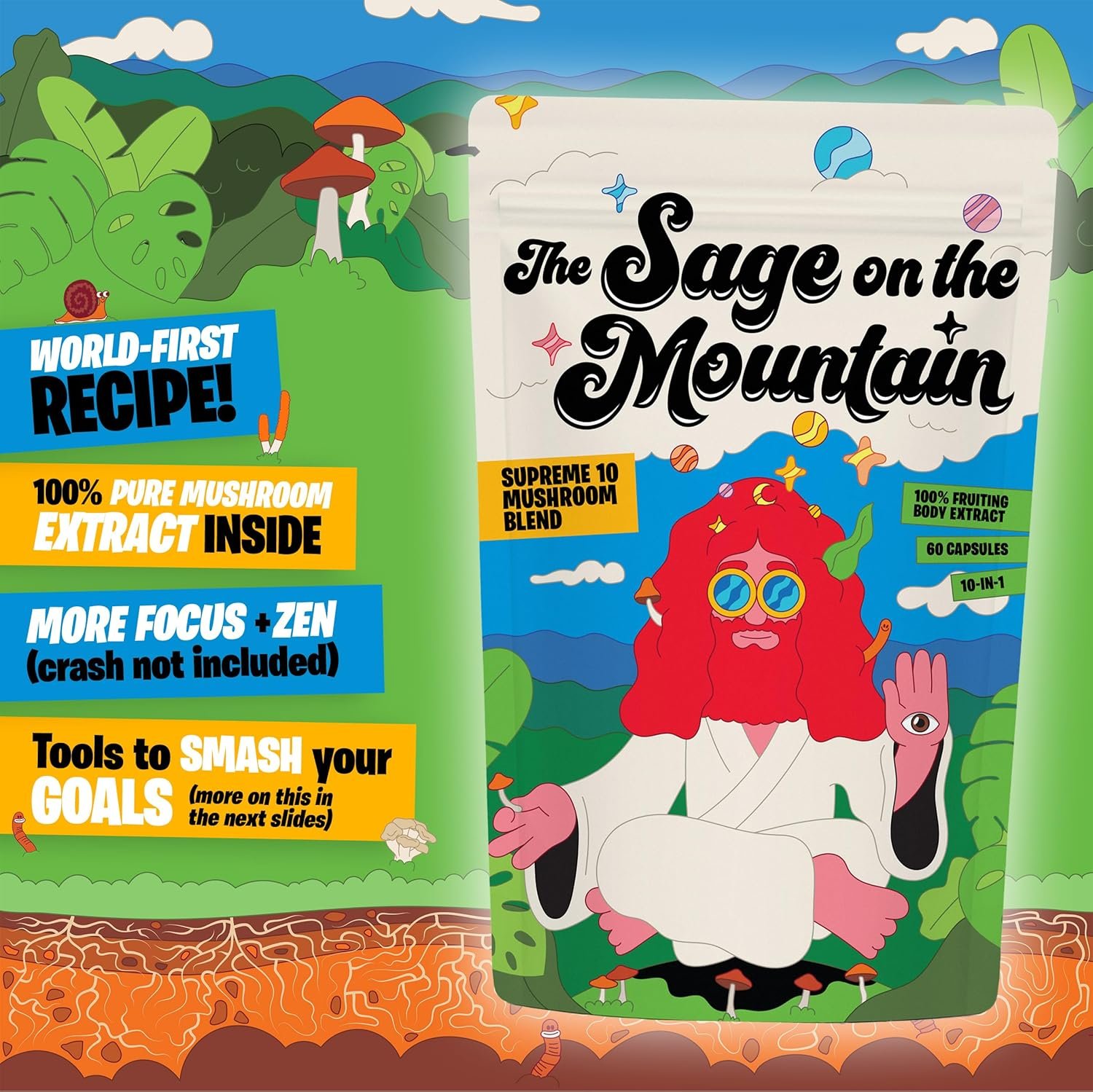 🍄 Vegan, Non-GMO & Lab Tested: Pure extracts, zero gimmicks – no fillers, no artificial junk. Just easy-to-swallow capsules the Sage insists are your “gateway to spiritual enlightenment” (We don’t argue with him) ✨