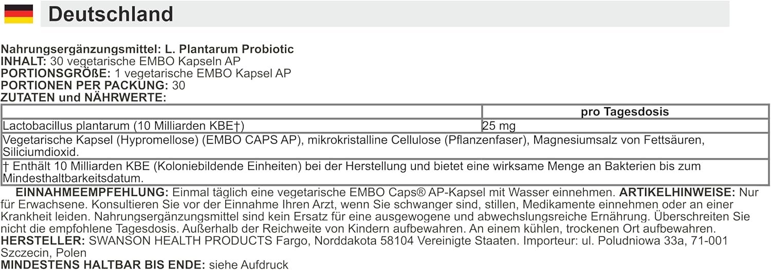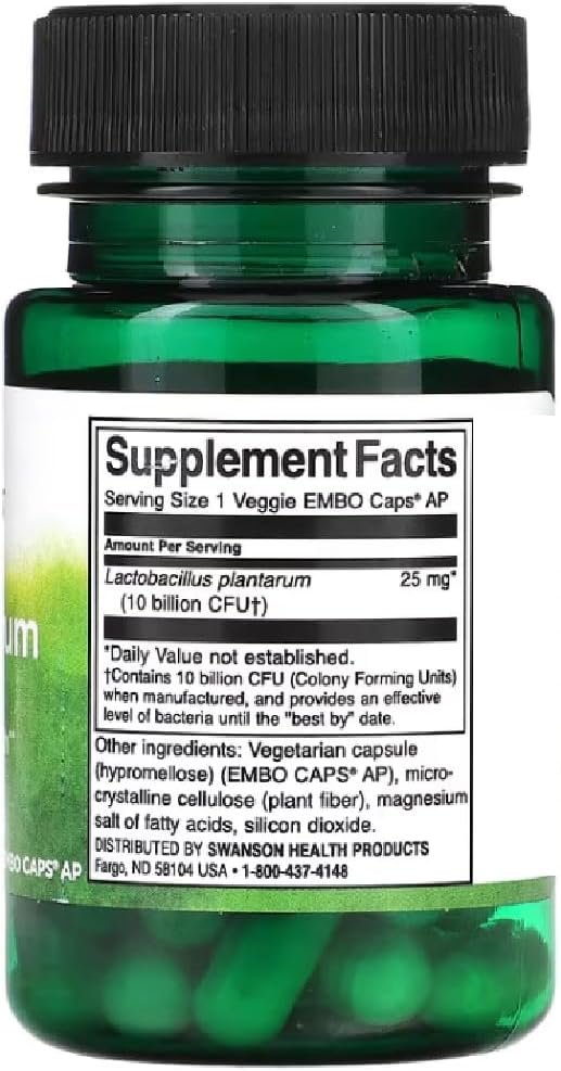 Swanson – L. Plantarum Inner Bowel Support | Probiotic for Digestive Health | 30 Vegetarian Capsules