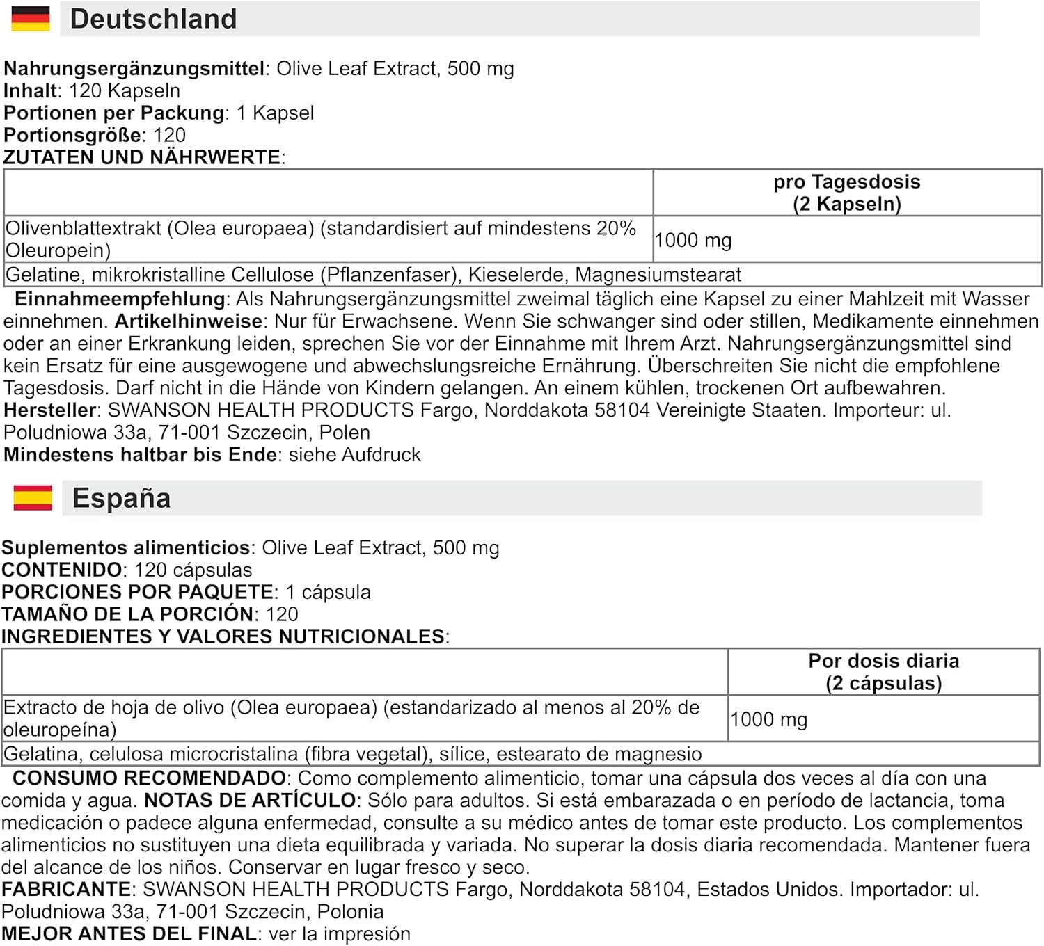 Swanson – Olive Leaf Extract 500mg | Traditional Herbal Support for Immune & Antioxidant Defense | 120 Capsules