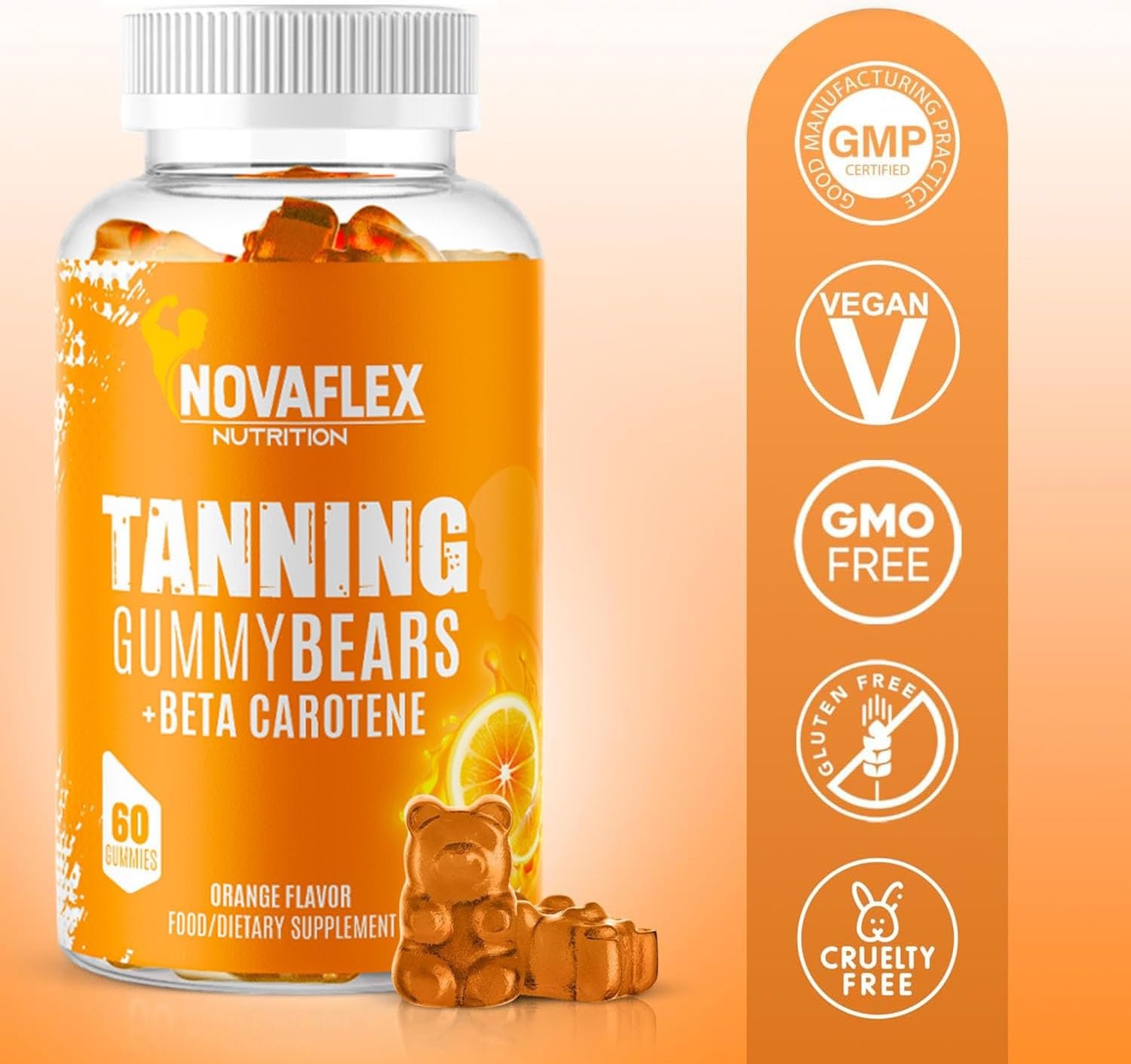 Vegan, Cruelty-Free, and Suitable for All Lifestyles: Made with a 100% vegan-friendly formula, NOVAFLEX NUTRITIONS upplements Tanning Gummies are crafted to suit a variety of dietary preferences and lifestyles. They’re free from animal products and harsh additives, making them a guilt-free choice for conscientious consumers who prioritise wellness that aligns with their values. NOVAFLEX NUTRITION Supplements is committed to providing you with a tanning supplement that not only supports your skin but also considers environmental and ethical standards.