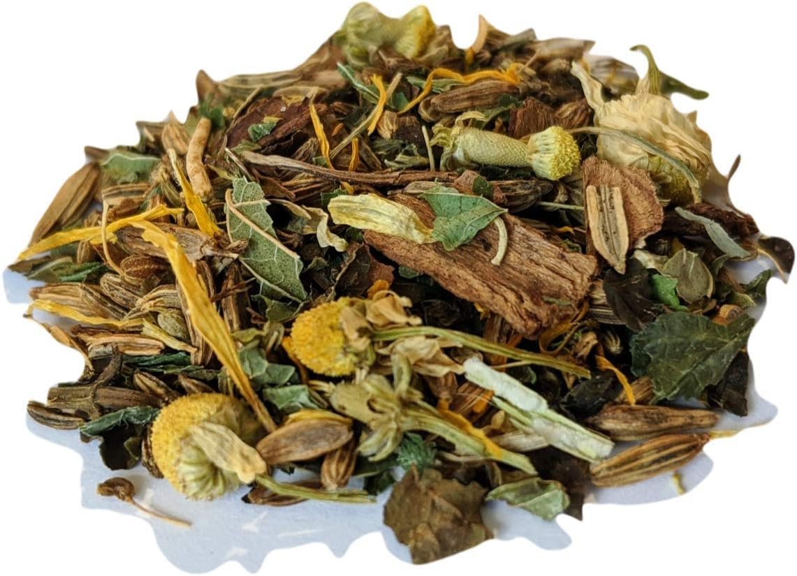 Anise, fennel, caraway, lemon balm leaves, chamomile flowers, Ceylon cinnamon, marigold petals
