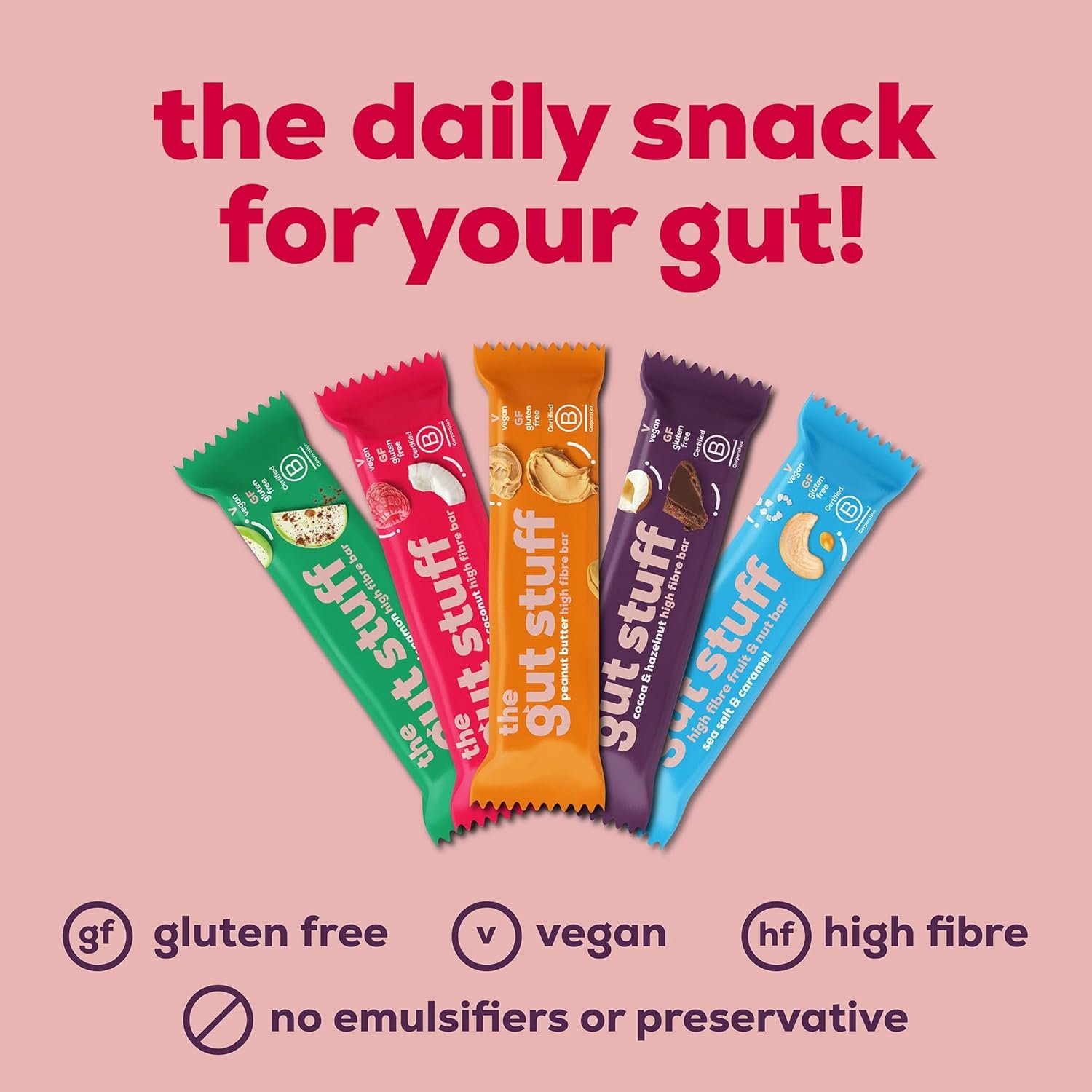 GUT-FRIENDLY FIBRE BARS: The Gut Stuff’s High Fibre Fruit & Nut Bars are the perfect snack for those looking to up their fibre intake. Each bar is carefully formulated with a blend of high-quality ingredients that are packed with fibre, making them a gut-friendly option. With 10g of fibre per bar, these bars provide 30% of your recommended daily intake.