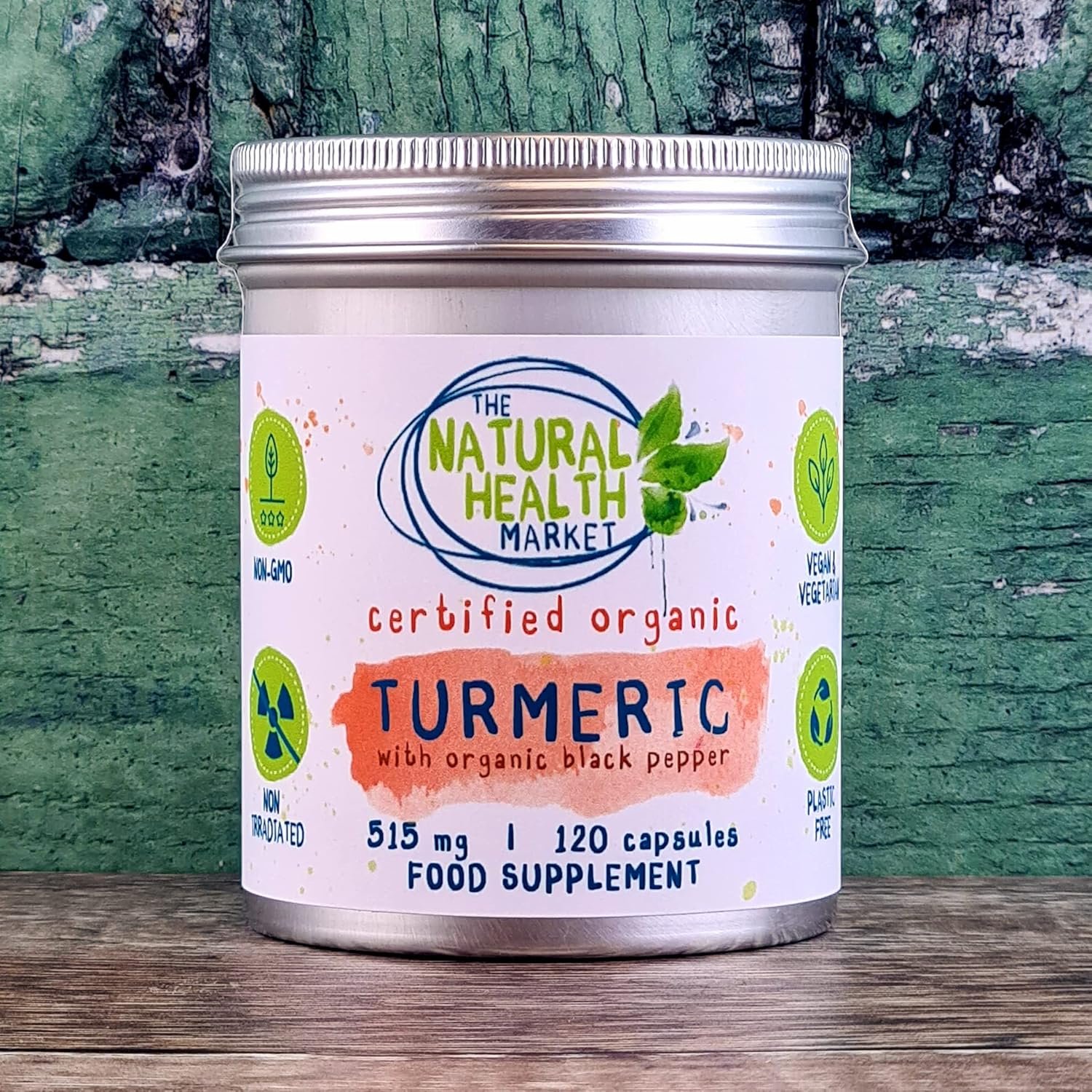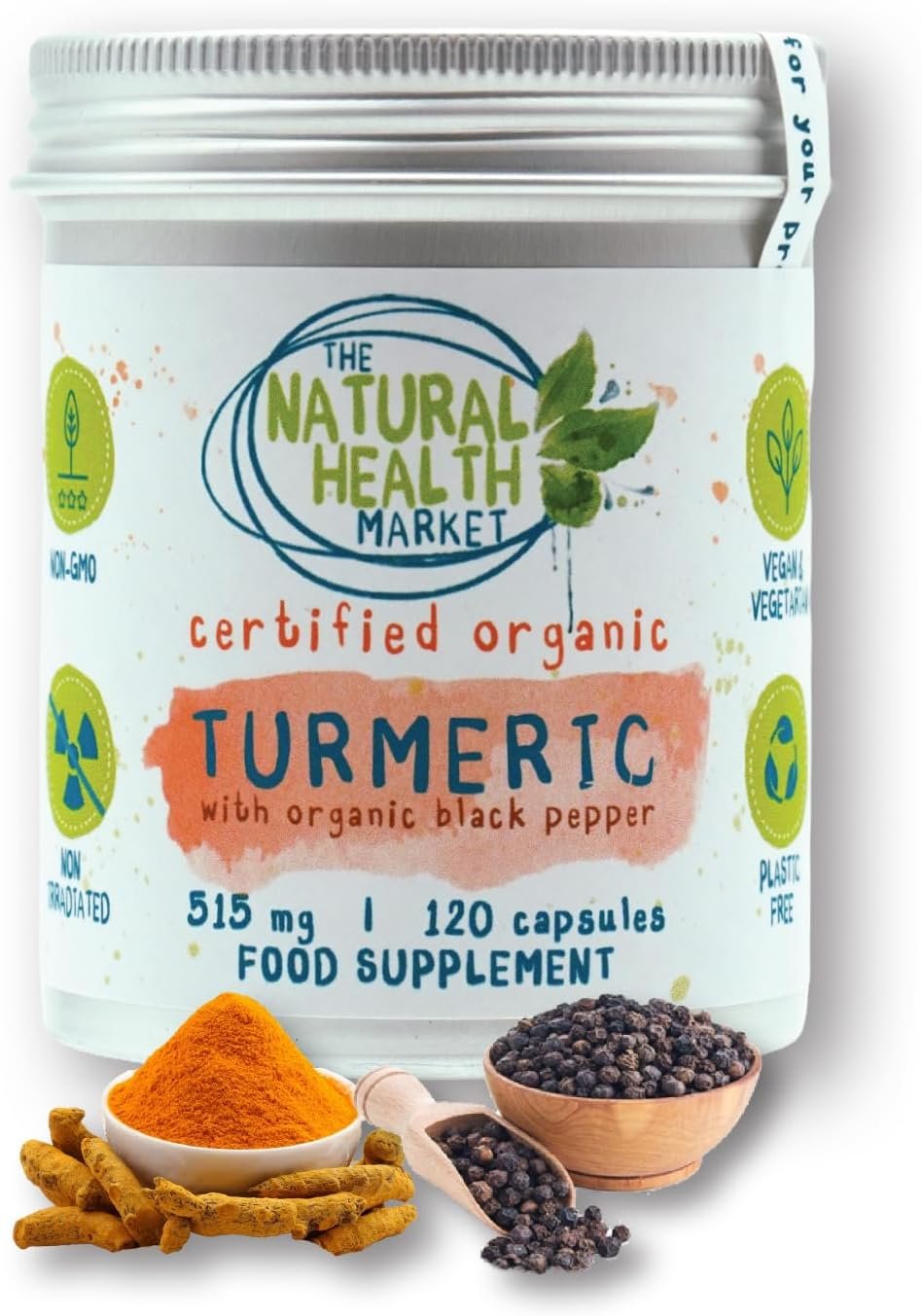 The Natural Health Market Organic Turmeric Curcumin and Black Pepper Capsules 515mg | Vegan Herbal | High Absorption Joint Support Supplement | 120 Capsules | UK Made