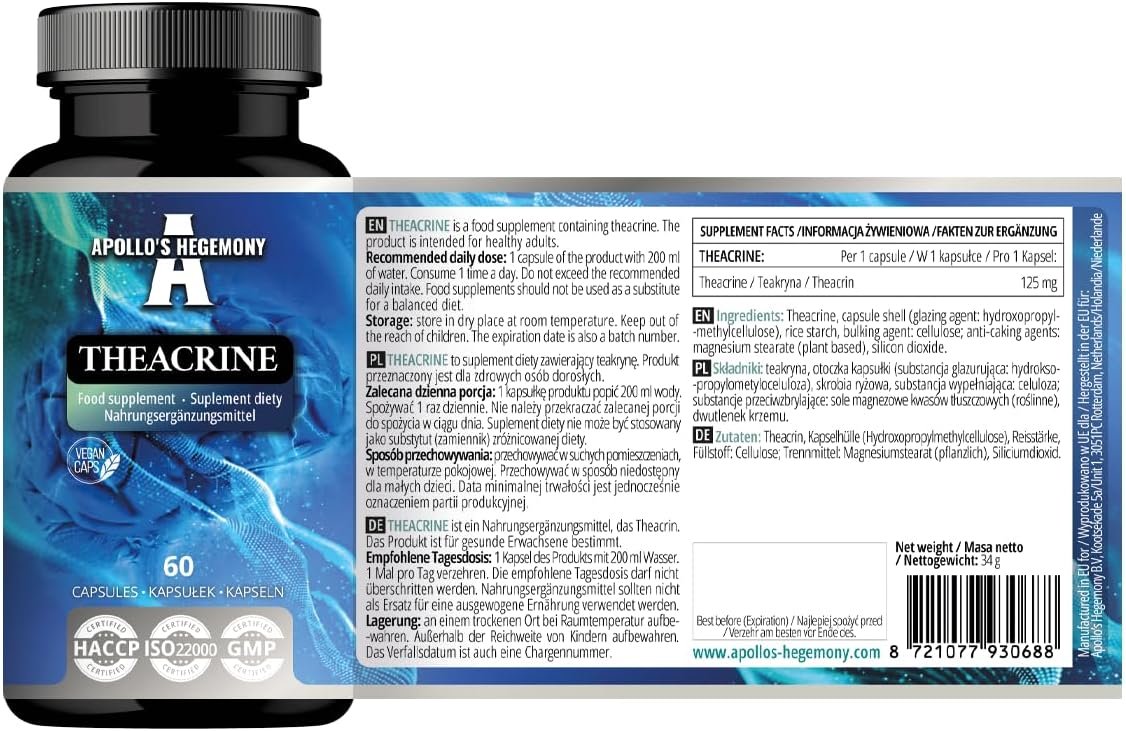Theacrine 125mg – 60 Vegan Capsules – Natural Alkaloid from Tea for Enhanced Focus and Energy – 2 Month Supply – Diet Supplement from Apollo’s Hegemony