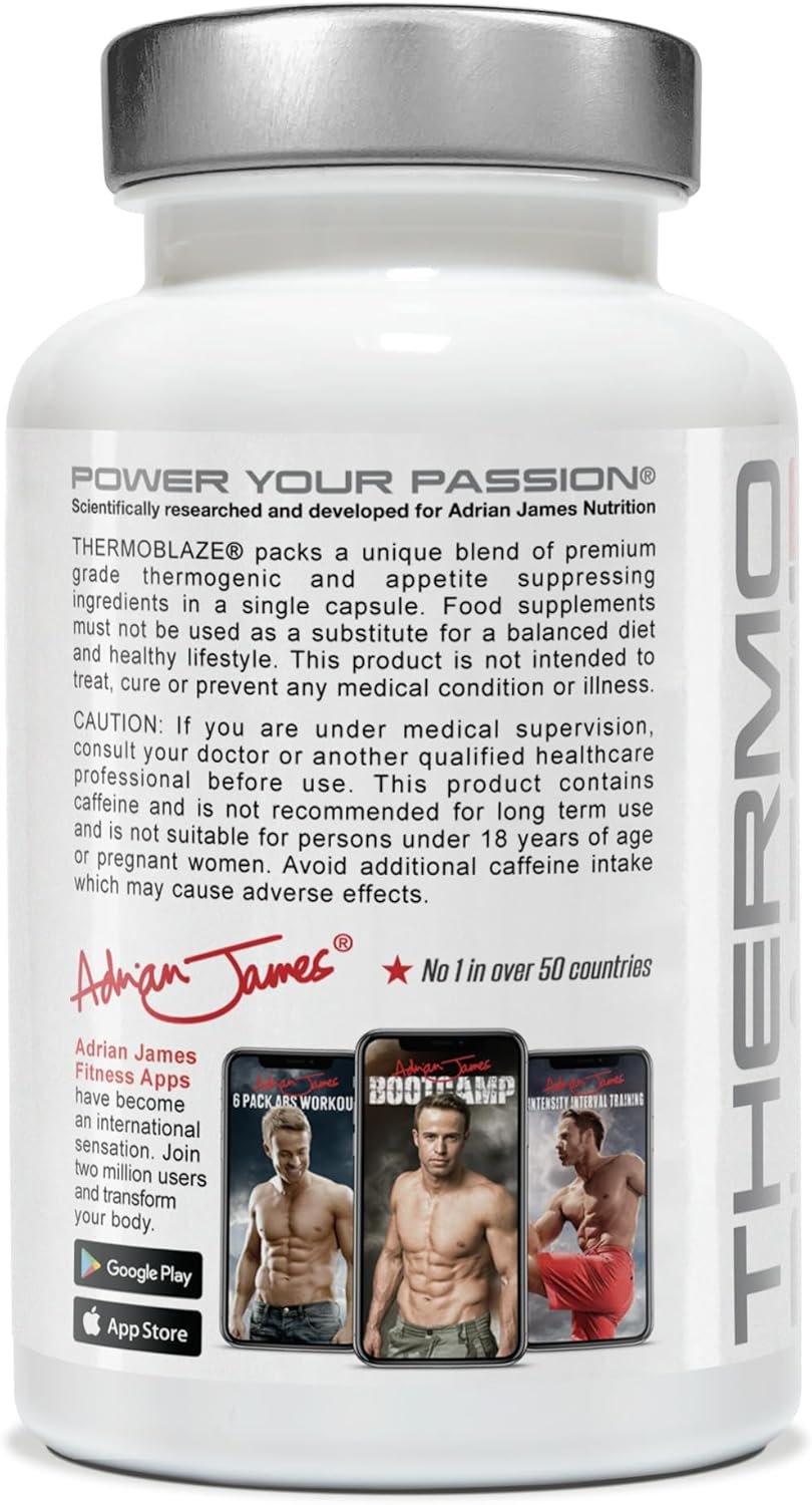 Unlock your body’s potential with Thermoblaze, a cutting-edge thermogenic fat burner meticulously developed to support a healthy metabolism. Packed with premium herbal extracts and nutrients, its natural ingredients help enhance muscle definition, boost energy levels, and curb cravings. When combined with a sensible meal plan and the Adrian James fitness apps, Thermoblaze accelerates your journey towards a sculpted physique, delivering visible transformations in just eight weeks.