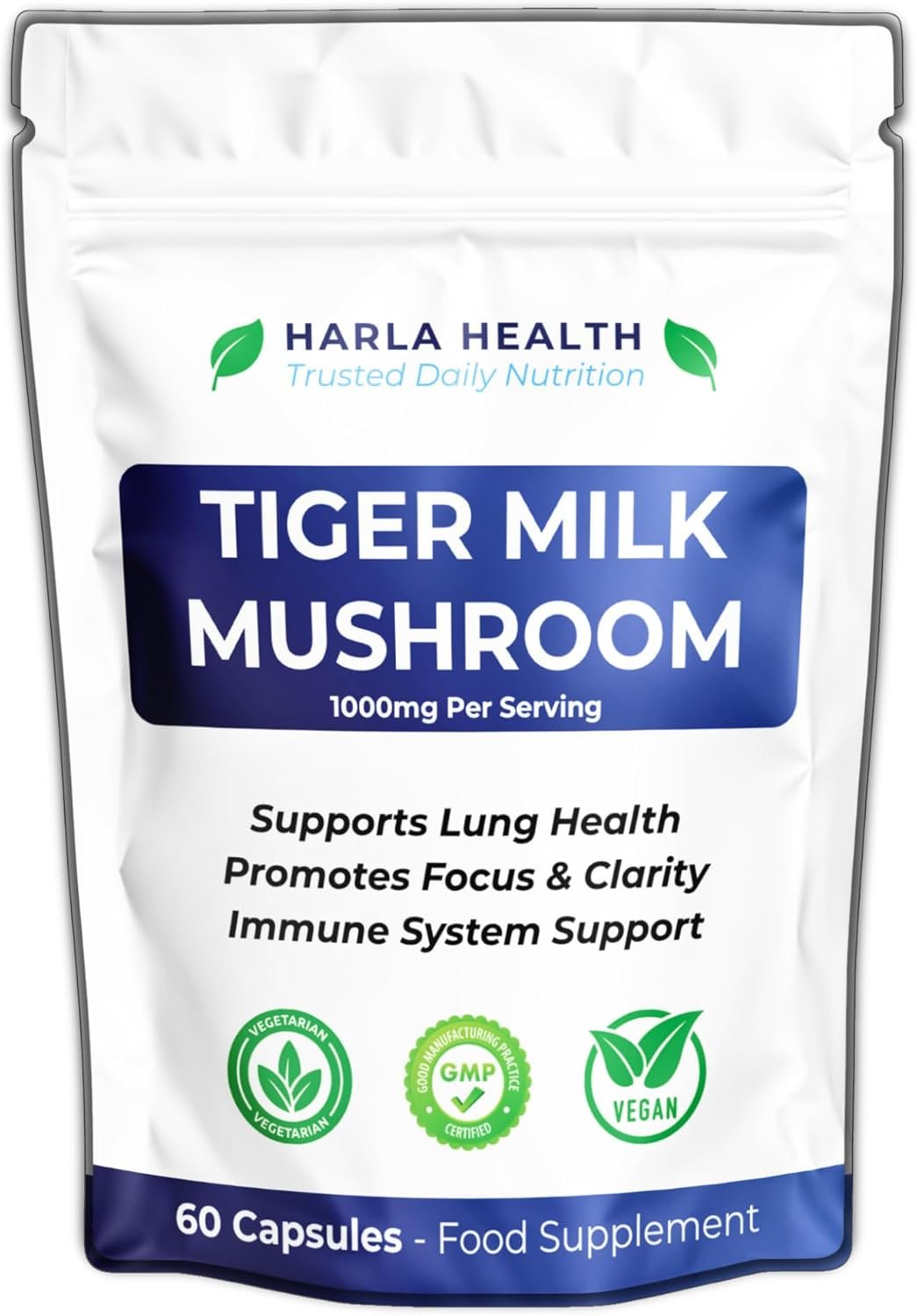Tiger Milk Mushroom 1000mg per Serving – High Strength 30:1 Extract | Supports Lung Function, Respiratory Health & Immune Defence | 60 Vegan Capsules | UK Made | Non-GMO, Gluten-Free