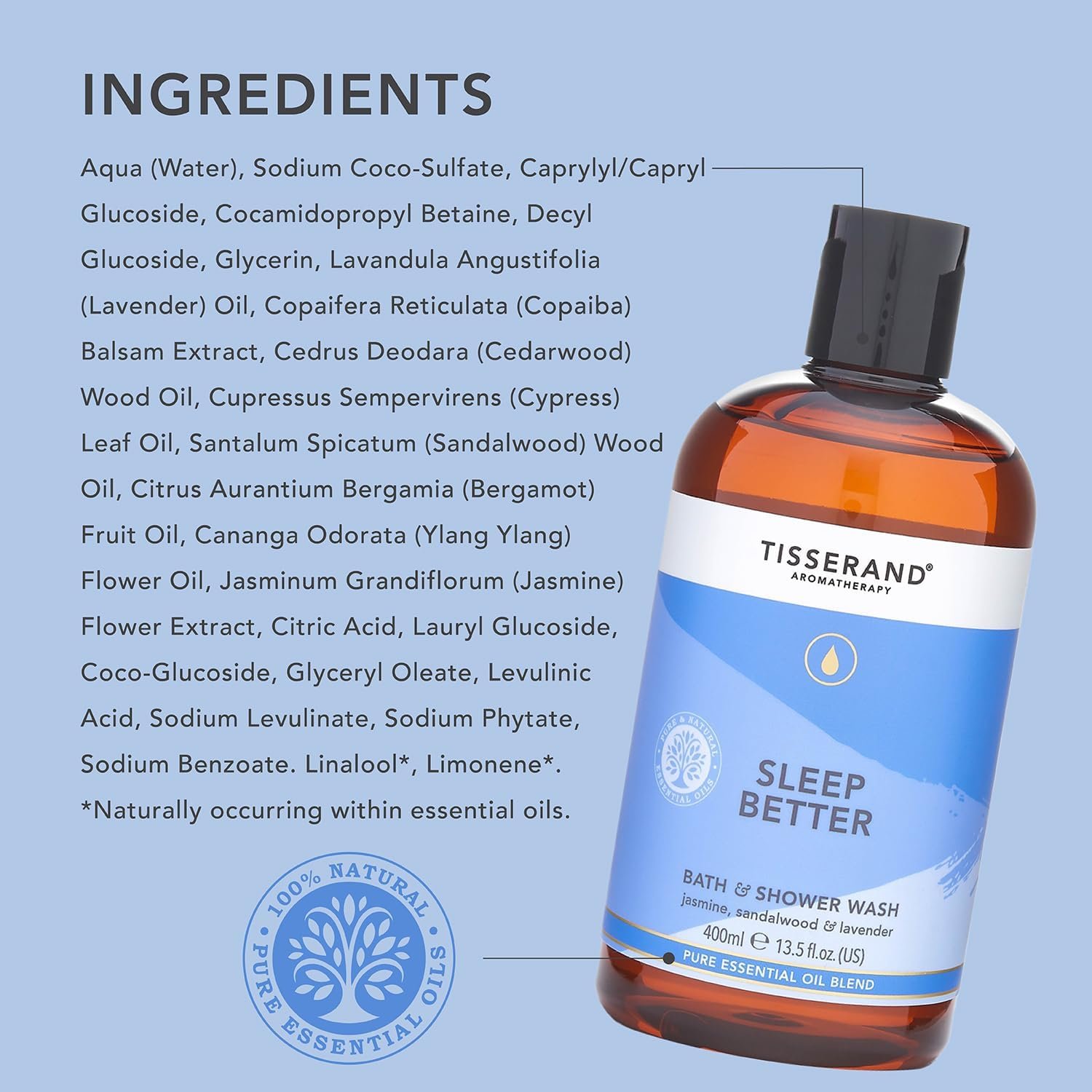 Tisserand Aromatherapy – Sleep Better – Bath & Shower Wash – Lavender, Jasmine & Sandalwood Essential Oils – 100% Natural Pure Essential Oils – 400ml