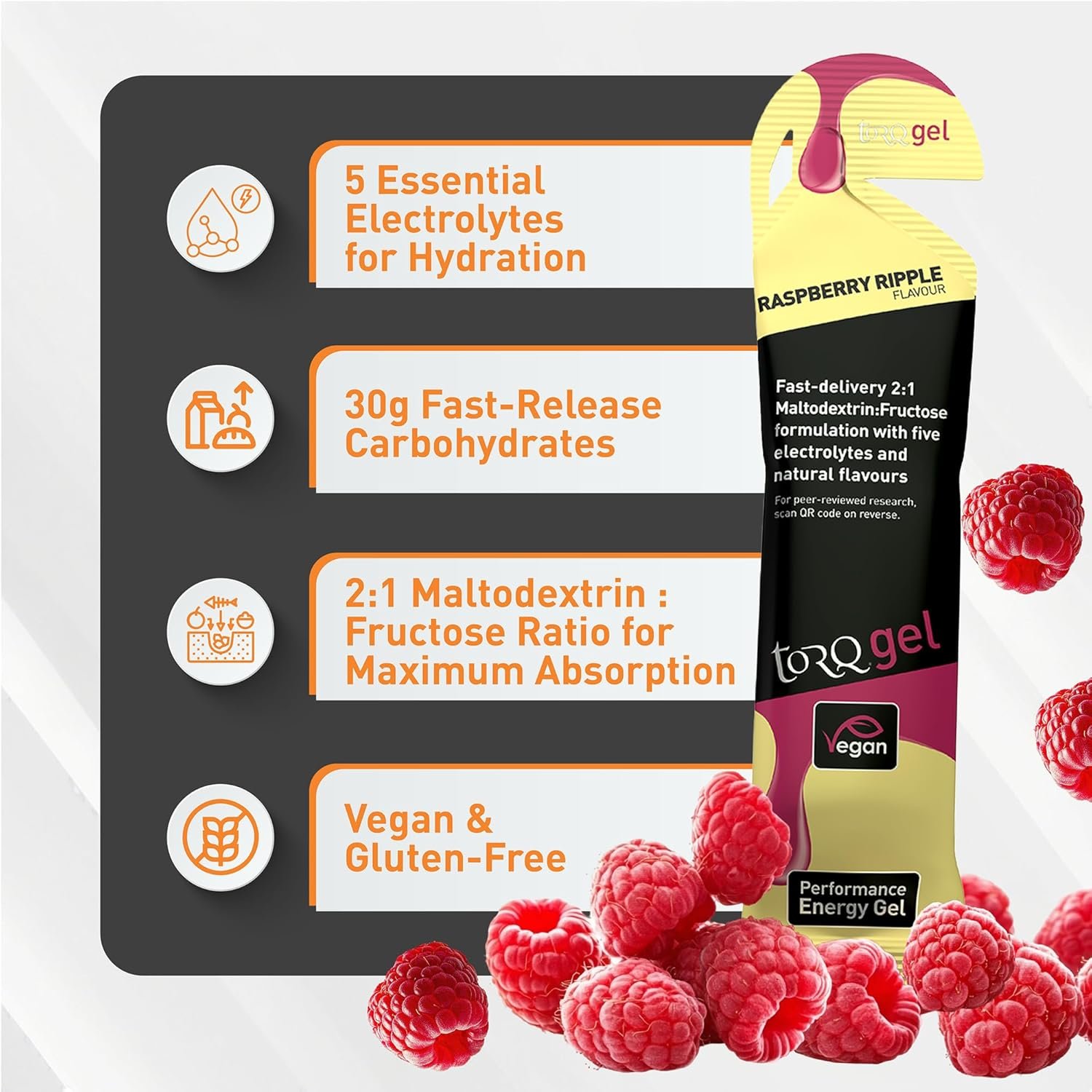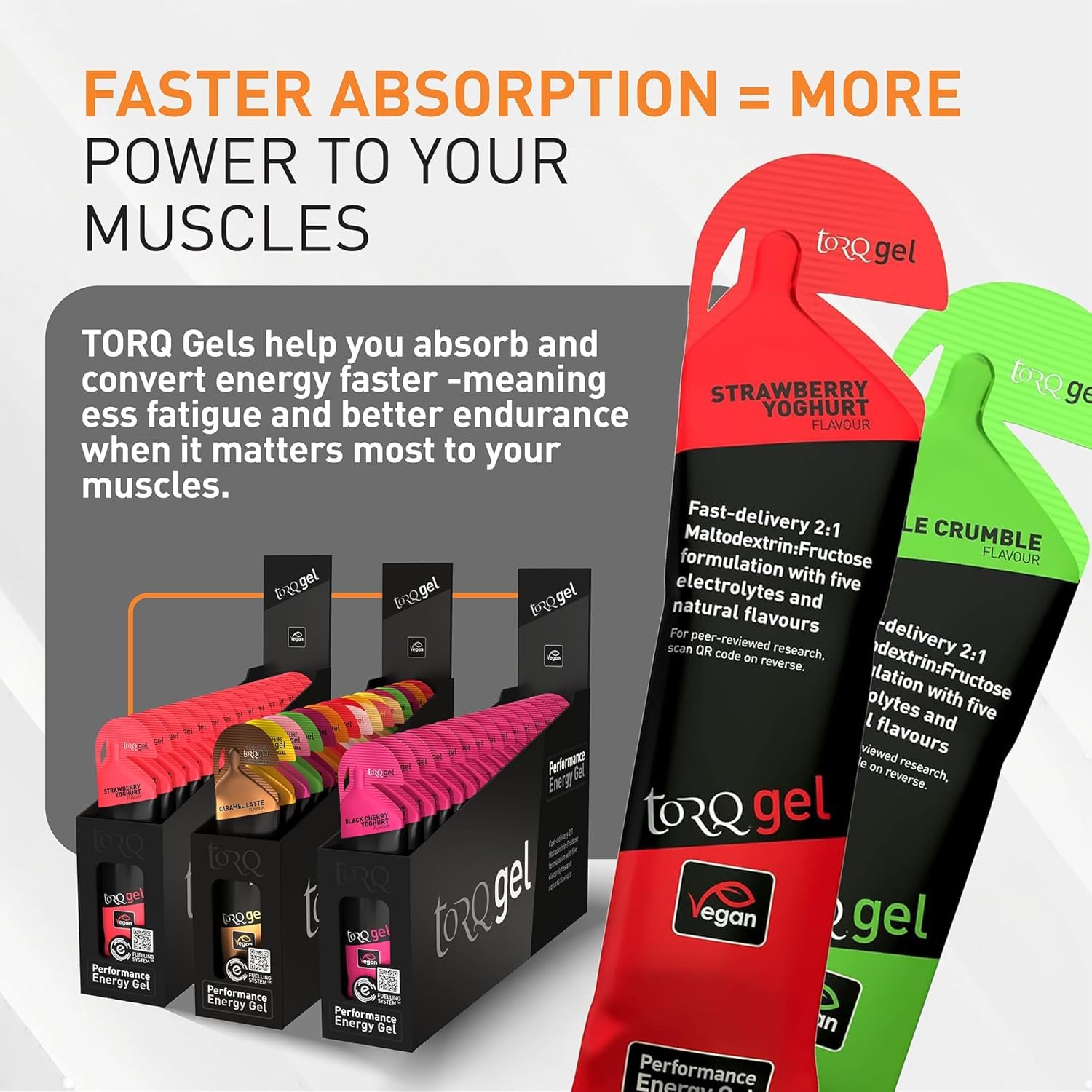 TORQ Running Gels with Electrolytes – 2:1 Maltodextrin: Fructose for Endurance Sports & Optimal Performance | Energy Gels for Running, Cycling & Marathons – 30g Carbs Per Gel | Cherry Yoghurt 15