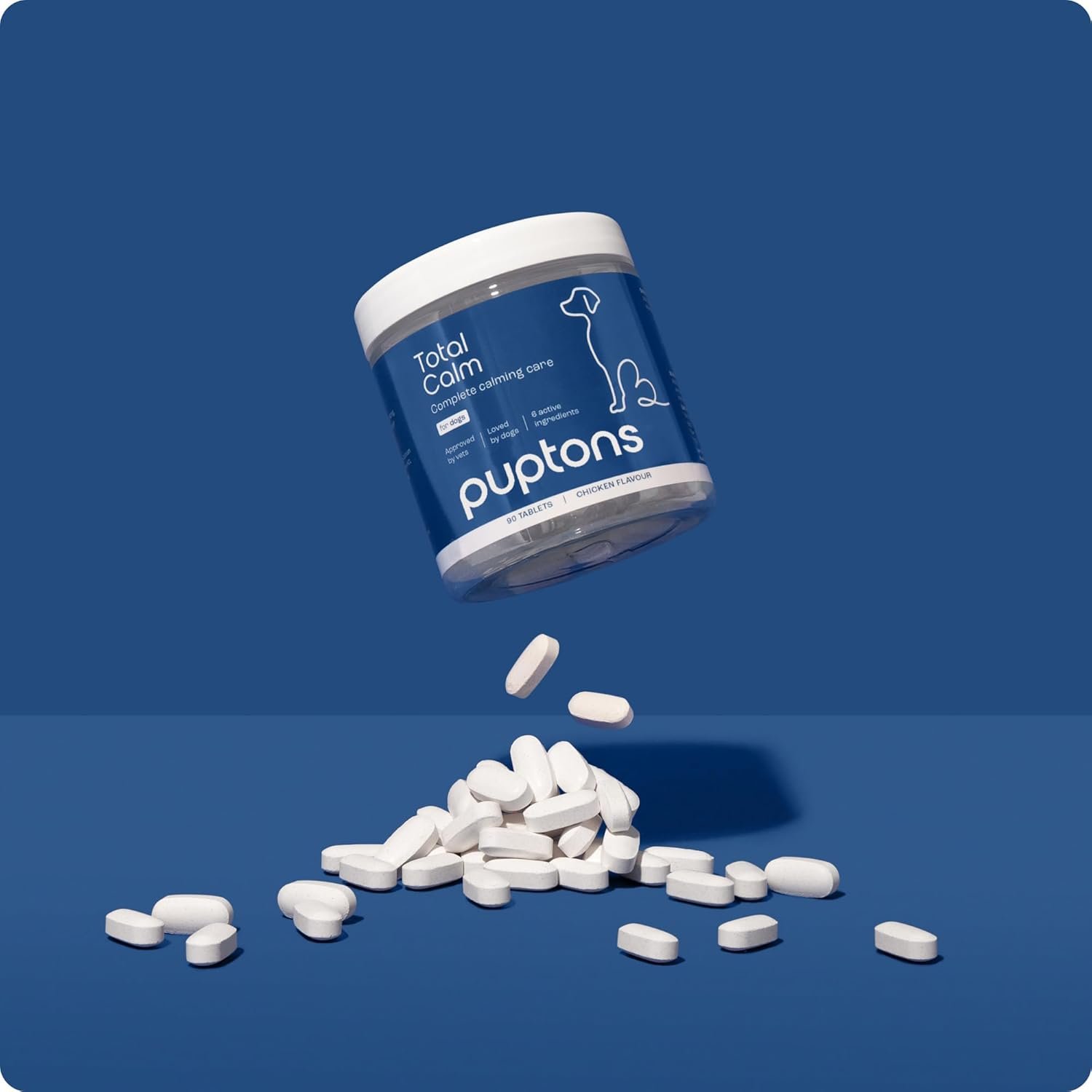 CALMING SUPPLEMENT FOR DOGS: Help your dog live a calm, relaxed and peaceful life with our natural calming tablets. The combination of 6 powerful ingredients in our Total Calm Tablets for Dogs helps to combat stress and fear.