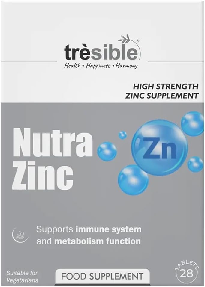 Trèsible High Strength Zinc Supplement | Nutra Zinc 28 Tablets | Immunity, Reproduction, Healthy Growth, Hair, Skin and Nails | Vegetarian, Gluten Free, Halal | No Synthetic Binders/Coating