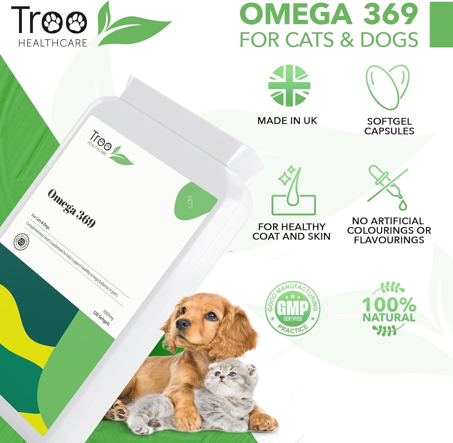 Troo Health Care Omega 369 Pet Perfect Omega Fish Oil – for Dogs & Cats – 1000mg 120 Capsules – Daily Omega 3 6 9 Supplement for Pets – Help Maintain Healthy Skin & Coat – Support Immune & Heart