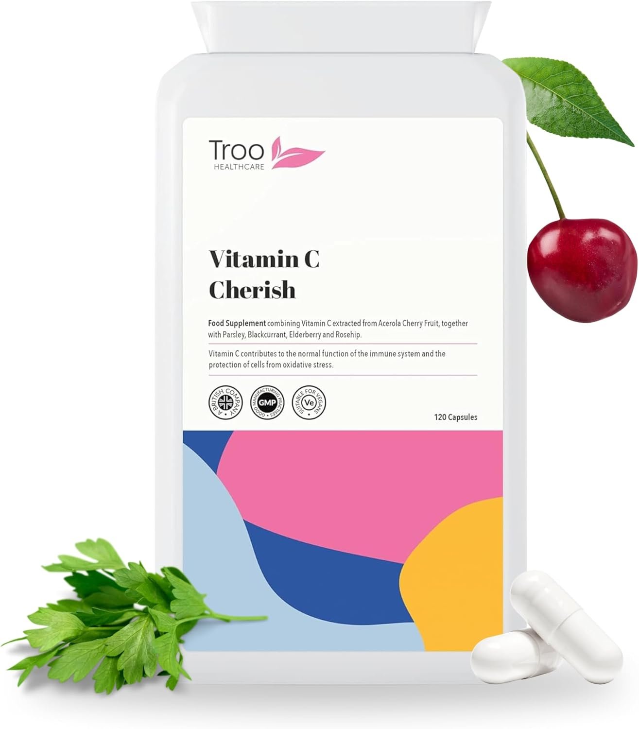 GMP QUALITY SUPPLEMENTS SINCE 2009 – As with all Troo Health Care supplements, Troo Vitamin C Cherish Capsules are manufactured in the UK to GMP standards to ensure consistent quality and traceability. No GMO materials are used, and the product is supplied with honest and transparent labelling, which is easy to understand – complying with current UK labelling regulations.