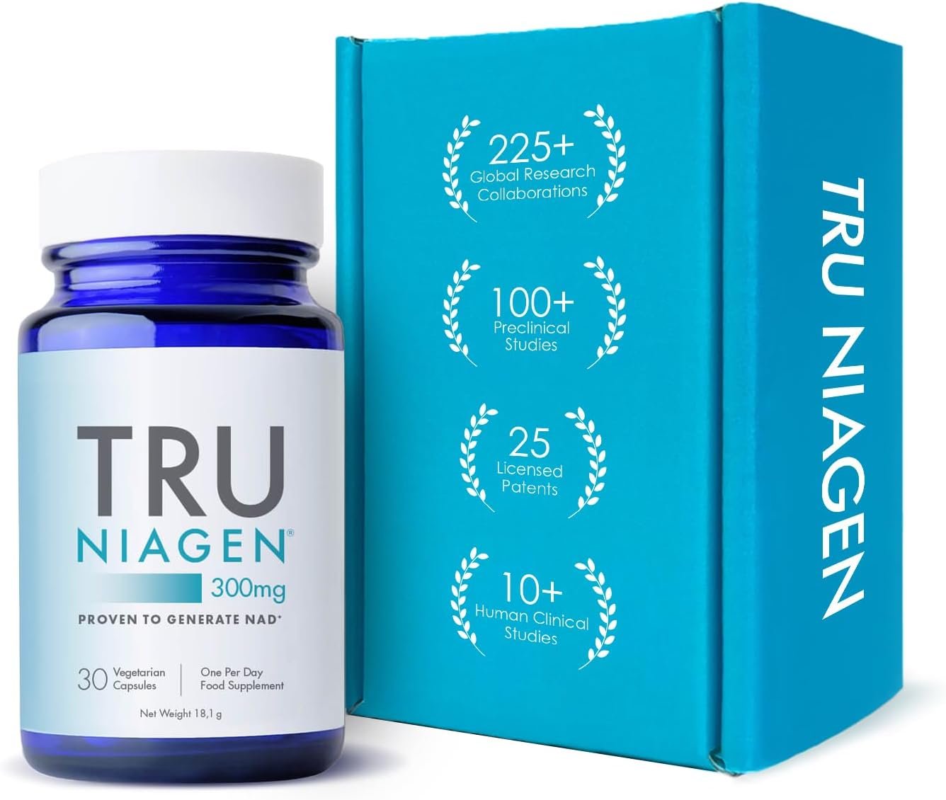 TRU NIAGEN Niacin as Nicotinamide Riboside NAD Supplement for Reduction of Tiredness & Fatigue, Patented Formula NR – 300mg x 30 Count –