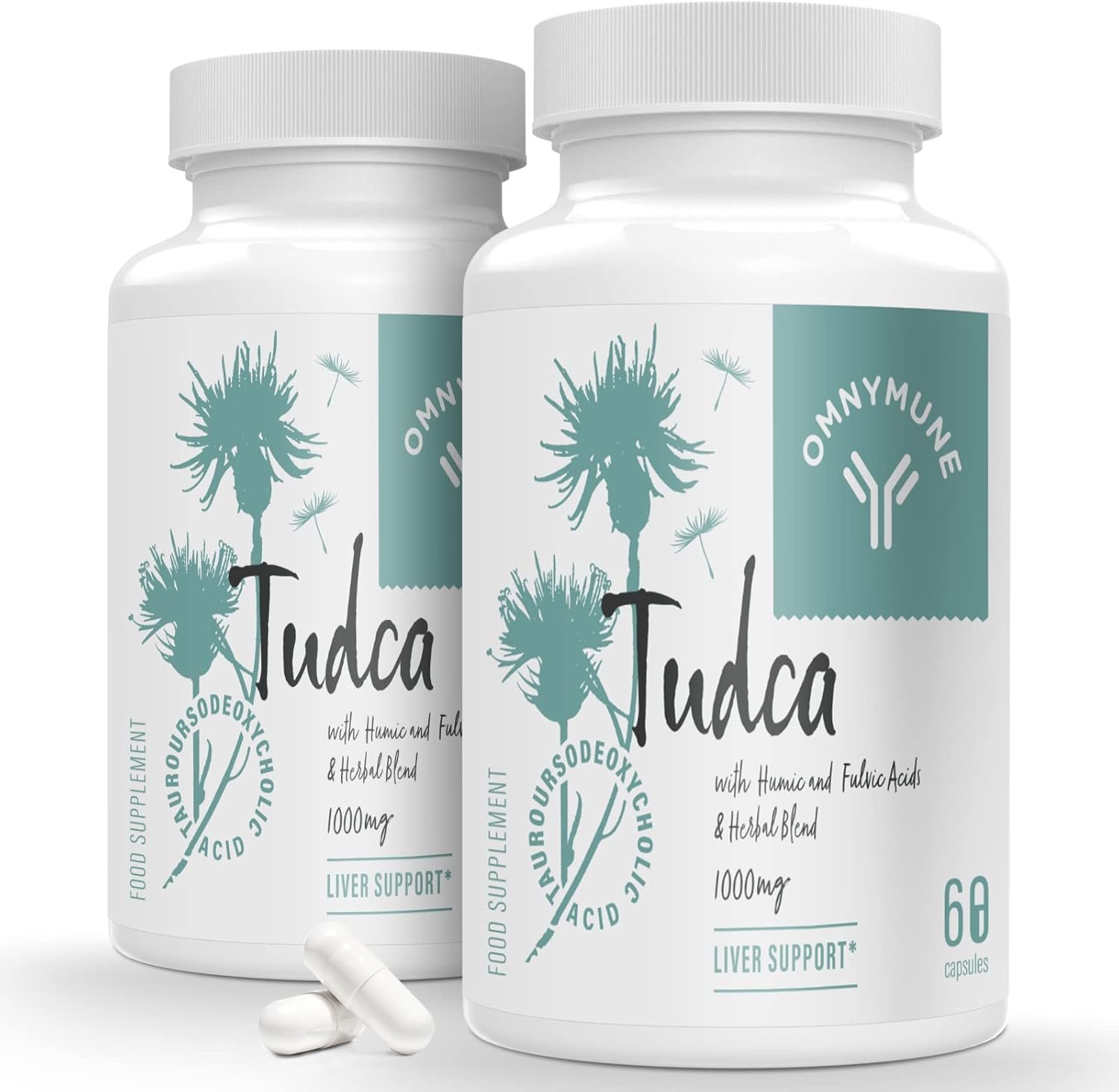 TUDCA Liver Supplements 1000 mg Per Serving (120 Capsules, 2 Pack), Tauroursodeoxycholic Acid with Humic and Fulvic, Herbal Blend, for Detox Cleanse, Digestive Health
