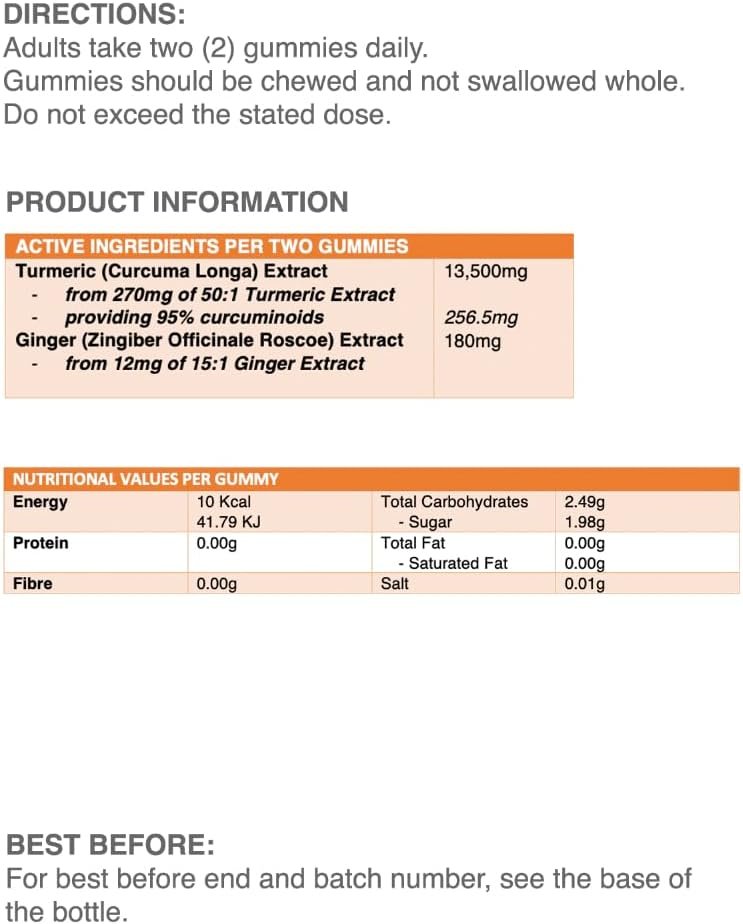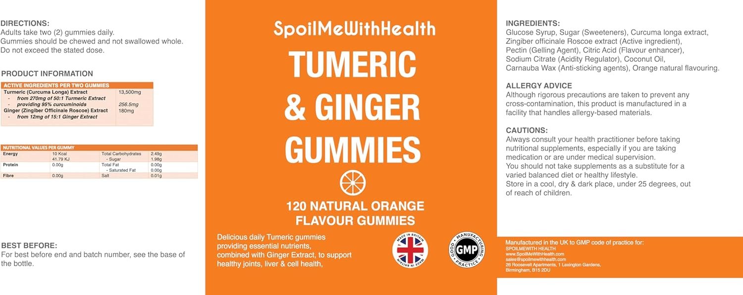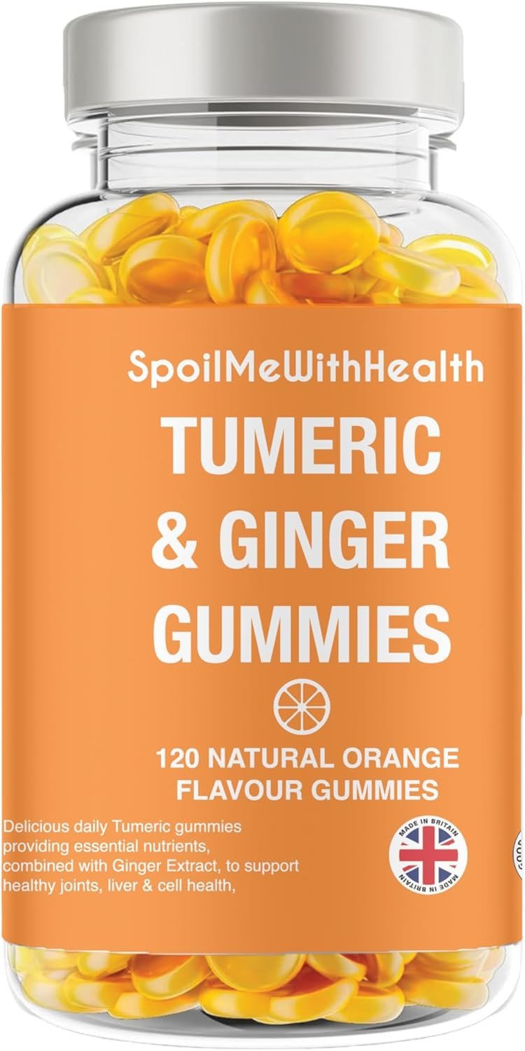 Turmeric & Ginger Gummies | Natural Orange Flavour | Chewable Supplement with Curcumin & Black Pepper for Joint & Digestive Support | 120 Gummies | UK Made