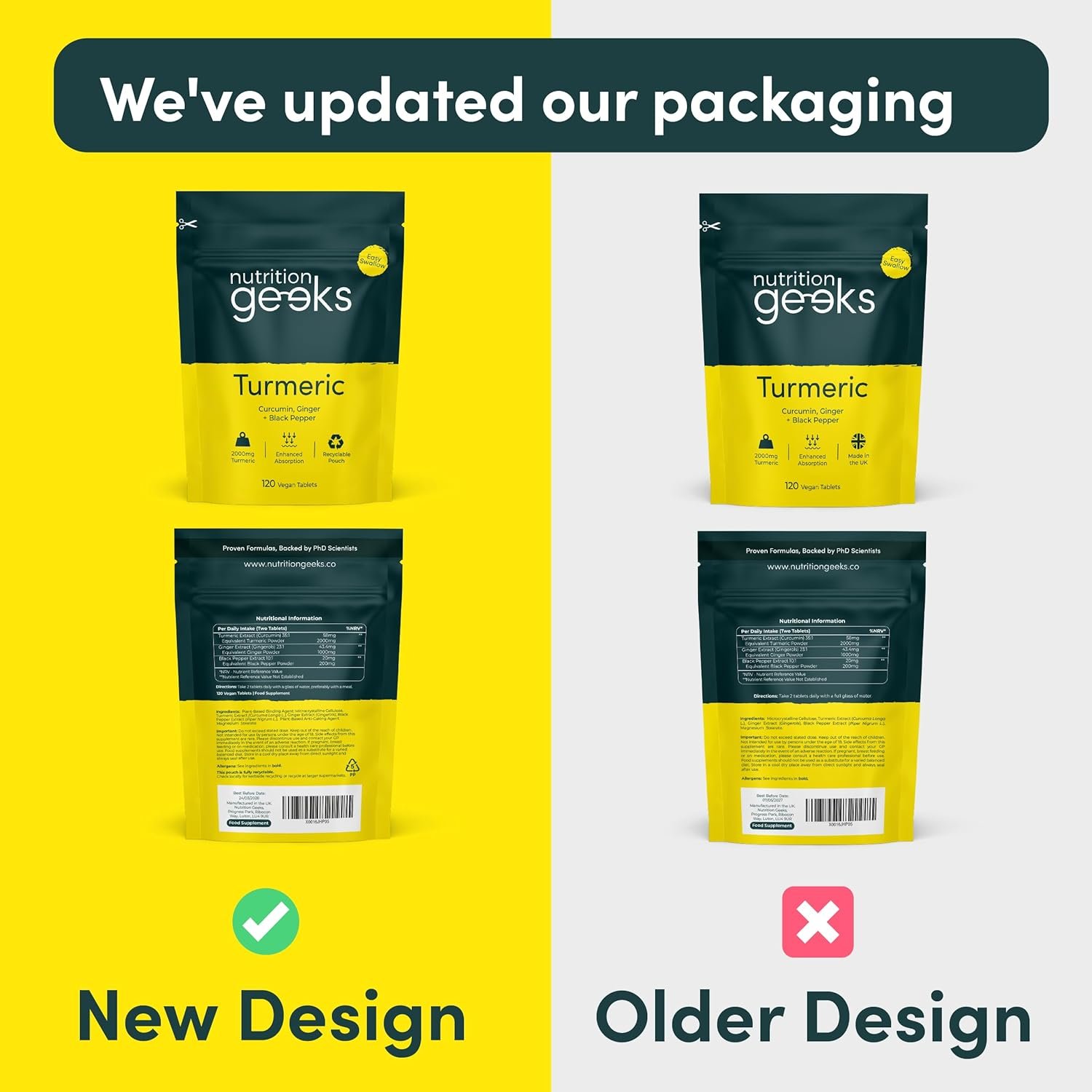 SPACE SAVING & LETTER-BOX FRIENDLY PACKAGING – By providing our turmeric tablets in flat pack packaging, we save on costly postage and storage fees associated with bottled turmeric capsules. Savings are passed on to you and allows us to spend more on research, helping us provide our loyal customers quality products at great value prices, whether it’s curcumin supplements, ashwaganda tablets, echinacea capsules or vitamins for immune system.