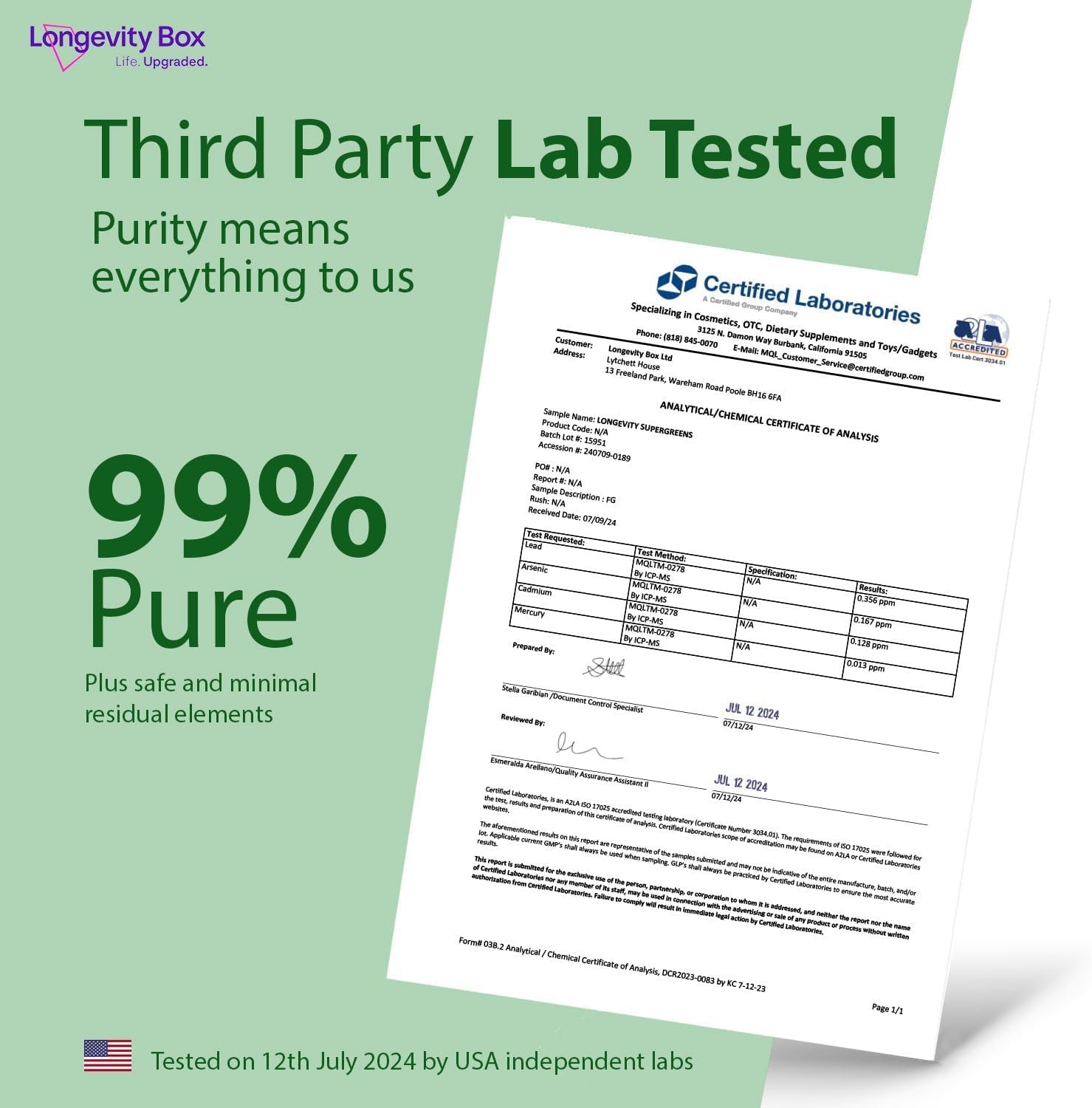 Premium, high-quality ingredients hand-selected by our longevity experts and independently certified for purity*.