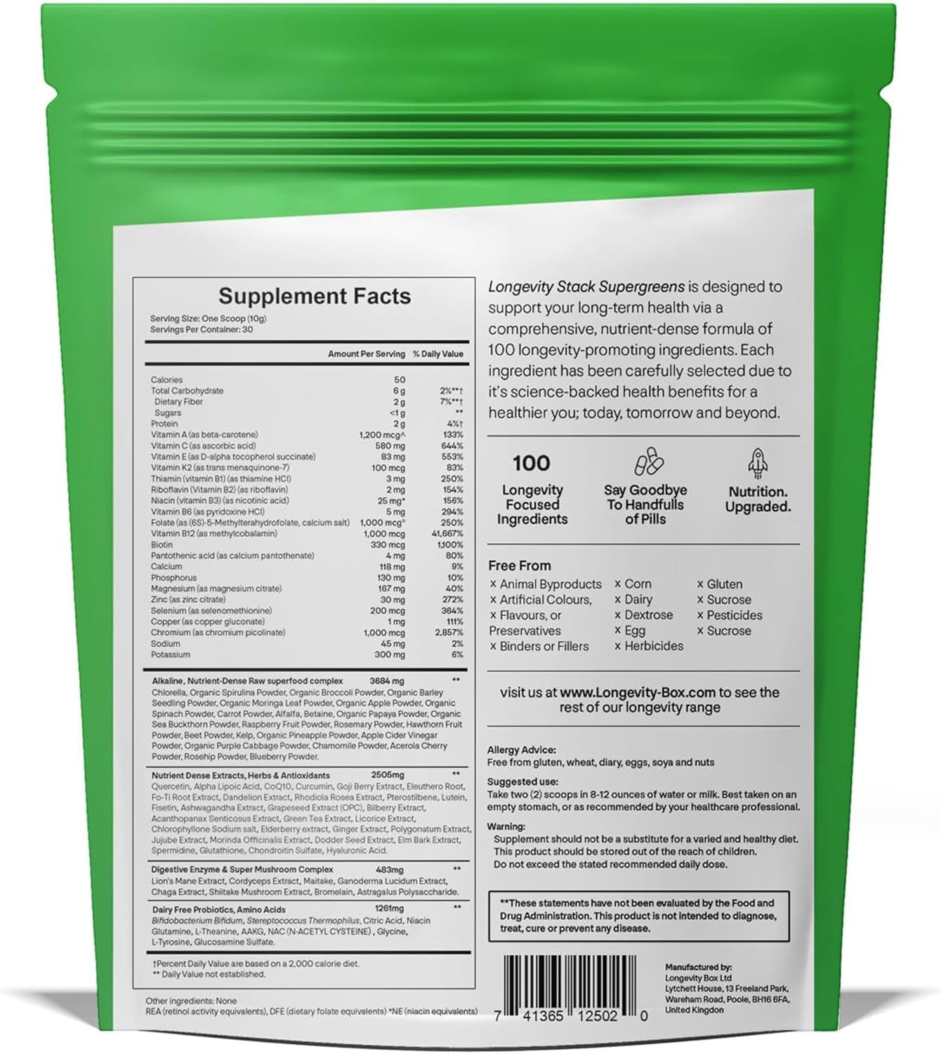 Ultimate 100 Ingredient Super Greens Powder | 300g 30 Servings of Superfoods Powder | Longevity Box | Vitamin & Mineral Rich Formula | Vegan & Vegetarian Friendly