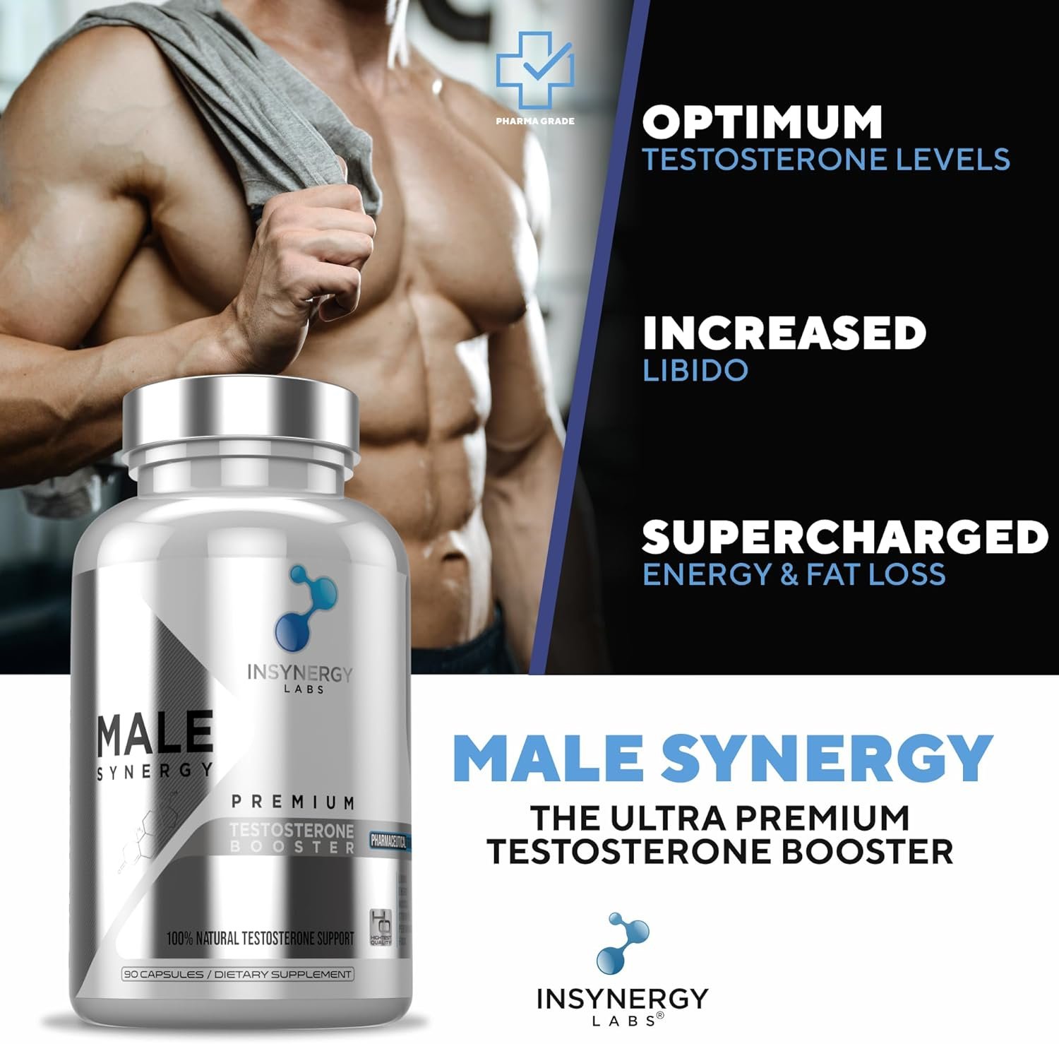 ✔️ Why are we the BEST Testosterone Supplement? – At Insynergy Labs we have worked hard to produce the Best Testosterone Supplements for men. Male Synergy The Ultra Premium Testosterone Booster for Men contains 12 of the most powerful 100% natural testosterone boosting compounds designed for maximum effect in minimal time, all in optimal dosages for unparalleled test boost, muscle, energy and libido results.