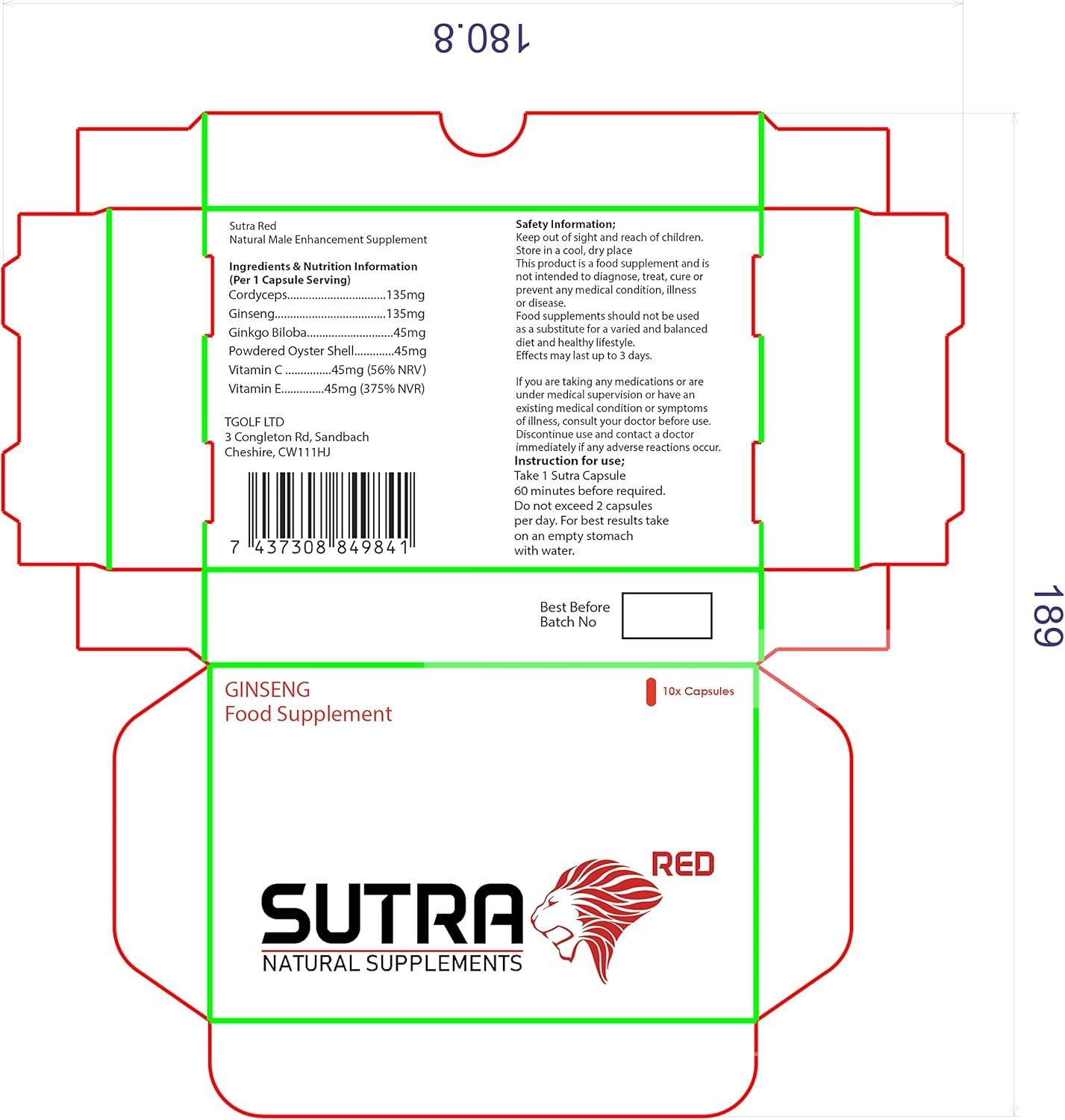 Pack includes 10 Sutra Red Capsules. These Herbal Boosters may help with with STAMINA, PERFORMANCE, ENERGY and ENDURANCE & HELPS NATURALLY SUPPORT TESTOSTERONE