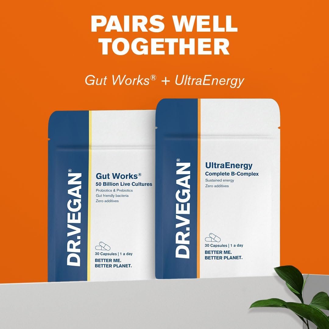 UltraEnergy | High Strength Vitamin B Complex | Includes Vitamin B12 (100ug), Choline (50mg), Biotin (50ug) and Folate (200ug) | 30 Vegan Capsules | One-A-Day | DR.VEGAN