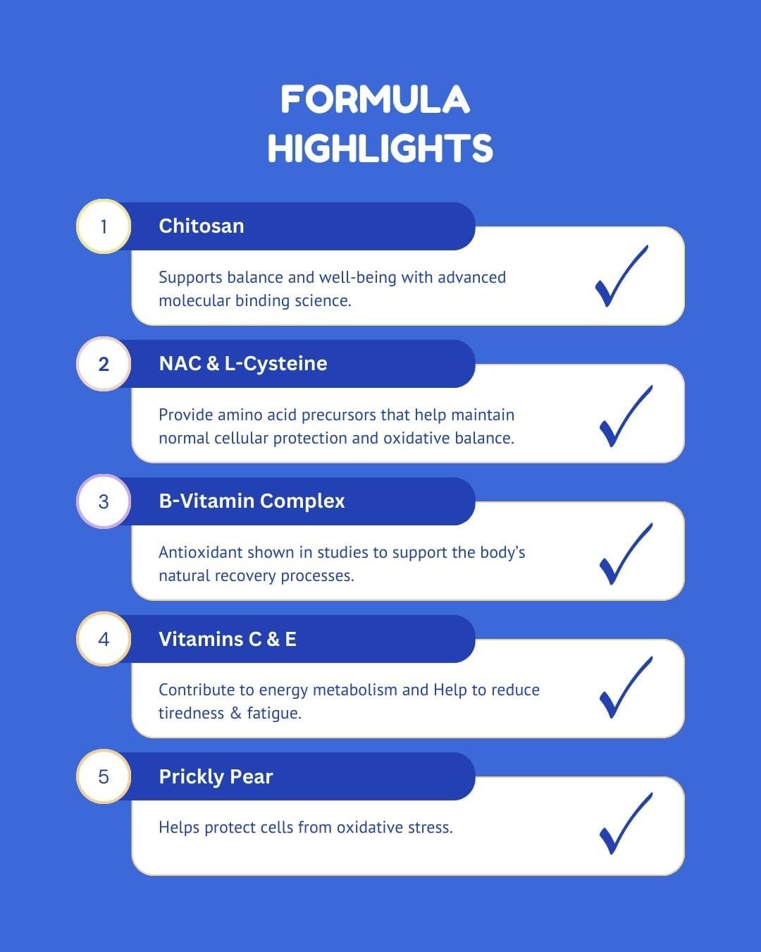 Unique Formula Supports Fast Natural Recovery, Featuring a Dual Cysteine Complex (L-Cysteine + NAC), Vitamins C & E, B-Complex, Chitosan, and Prickly Pear to Support Morning Energy. (4)