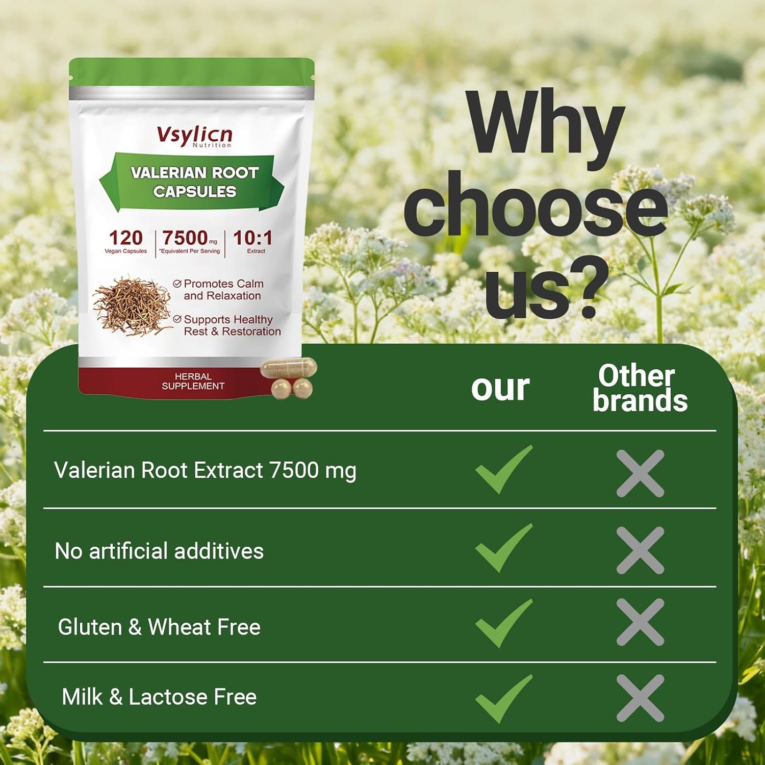 Highly Concentrated 10:1 Extract for Maximum Effect – Made with a potent 10:1 extraction ratio—each two-capsule serving delivers the equivalent of 7500mg of valerian root, offering a powerful dose in two small, easy-to-take capsules.