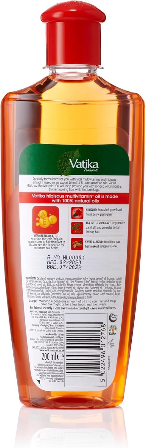 Vatika Naturals Hibiscus Multivitamin Hair Oil – 200ml | Blend Of Tea Tree & Rosemary Oil | For Dandruff-Free Hair | Nourishing Formula For Healthy, Beautiful Hair