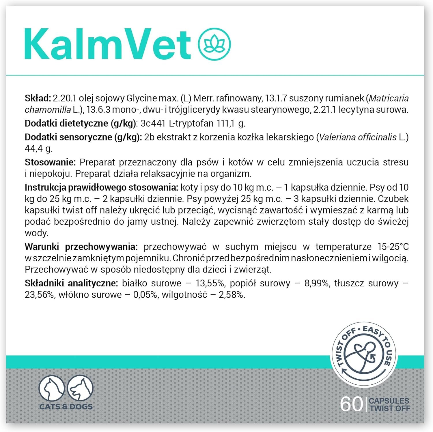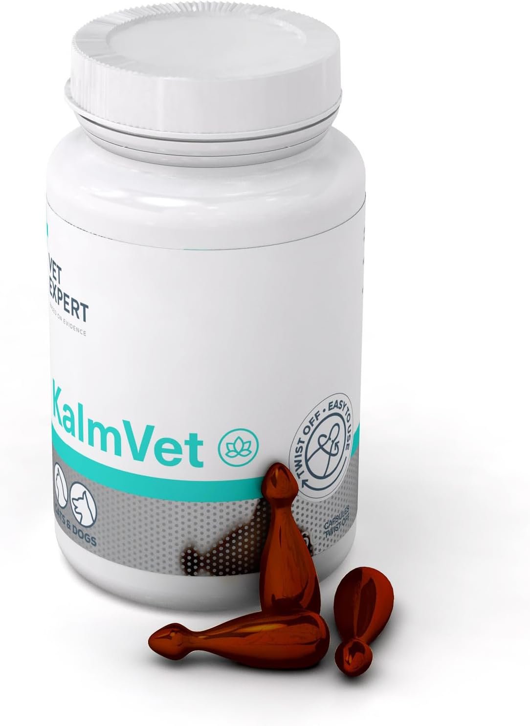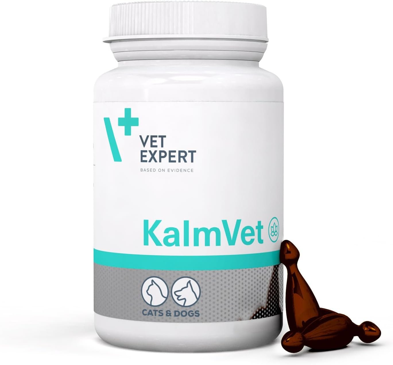 Vet Expert Kalmvet Stress and Anxiety Relief Supplement for Dogs and Cats – Promotes Relaxation with Chamomile, L-Tryptophan, and Valerian Root Extract 60 Twist off Capsules