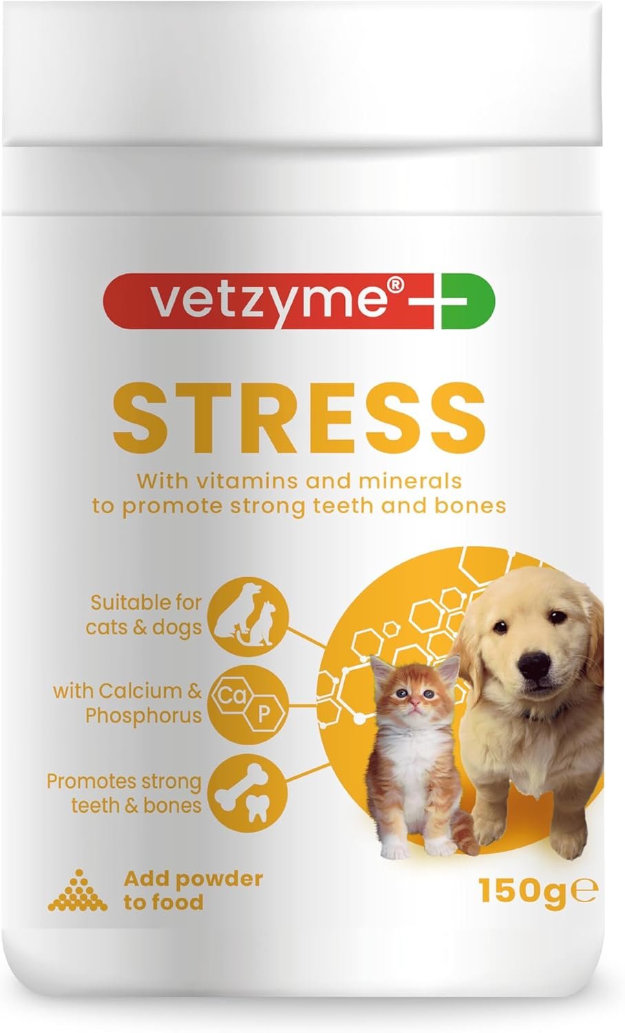 Vetzyme Stress Supplement Powder for Dogs and Cats – Balanced Multi-Mineral and Vitamin Supplement, Promotes Strong Teeth and Bones (150g)