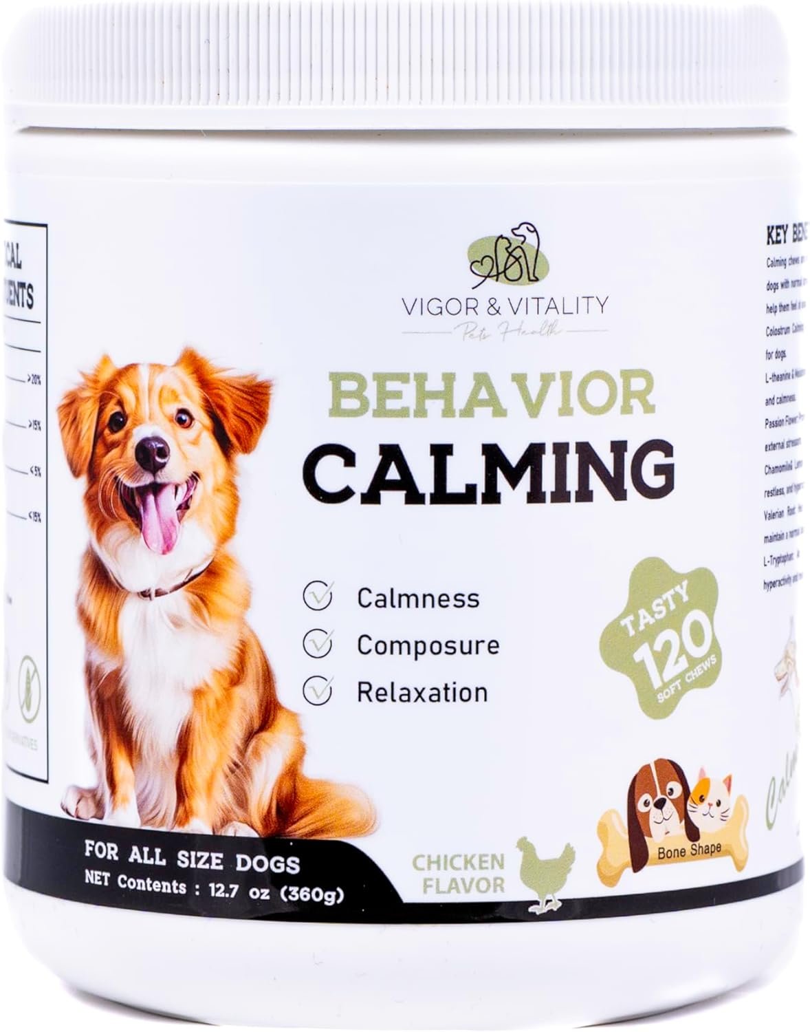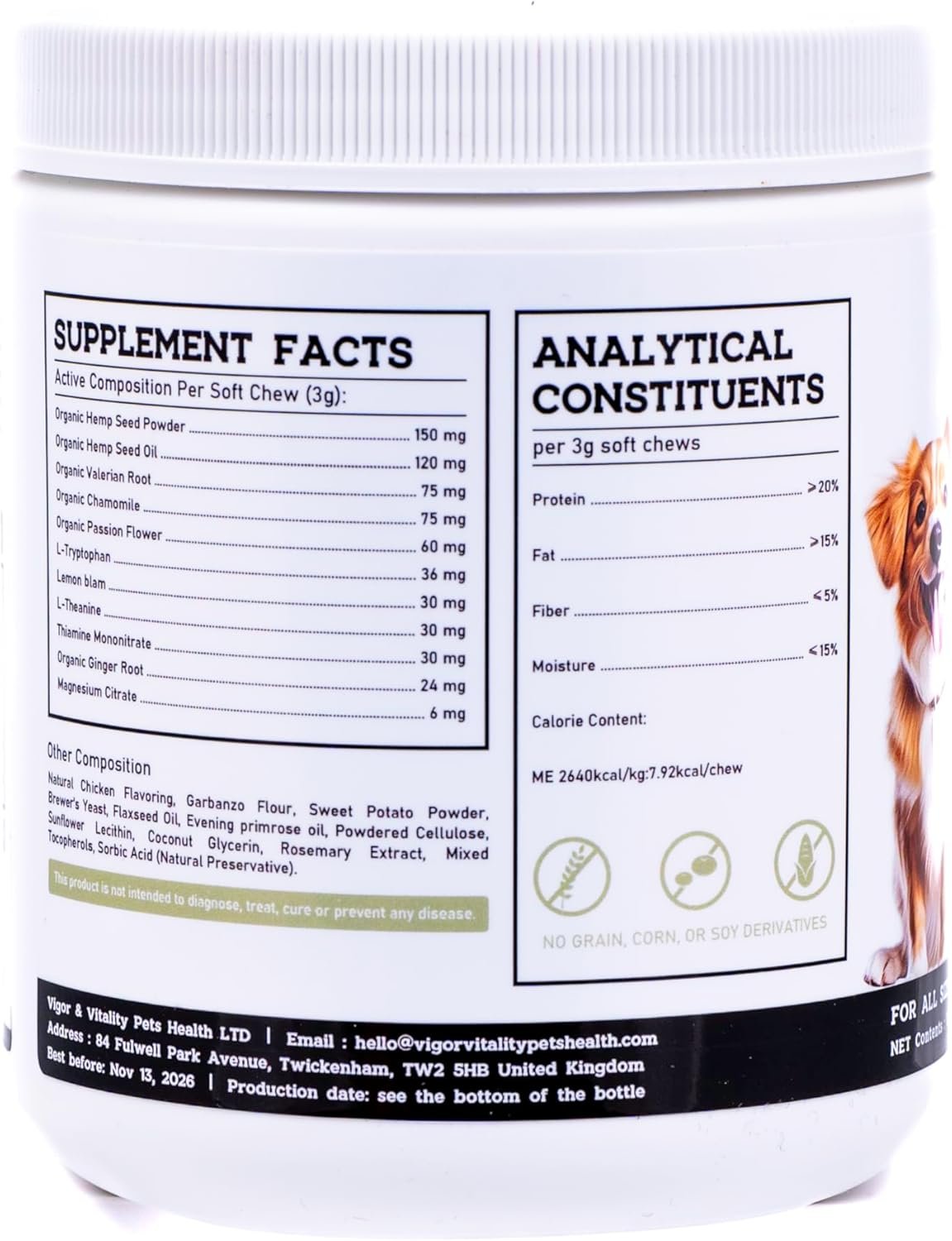 Vigor & Vitality Calming Treats For Dogs, Relaxation, Barking, Fear, Emotional Balance, Eases Anxiety, Hyperactivity & Stress. 120 Chews (Chicken Flavour)
