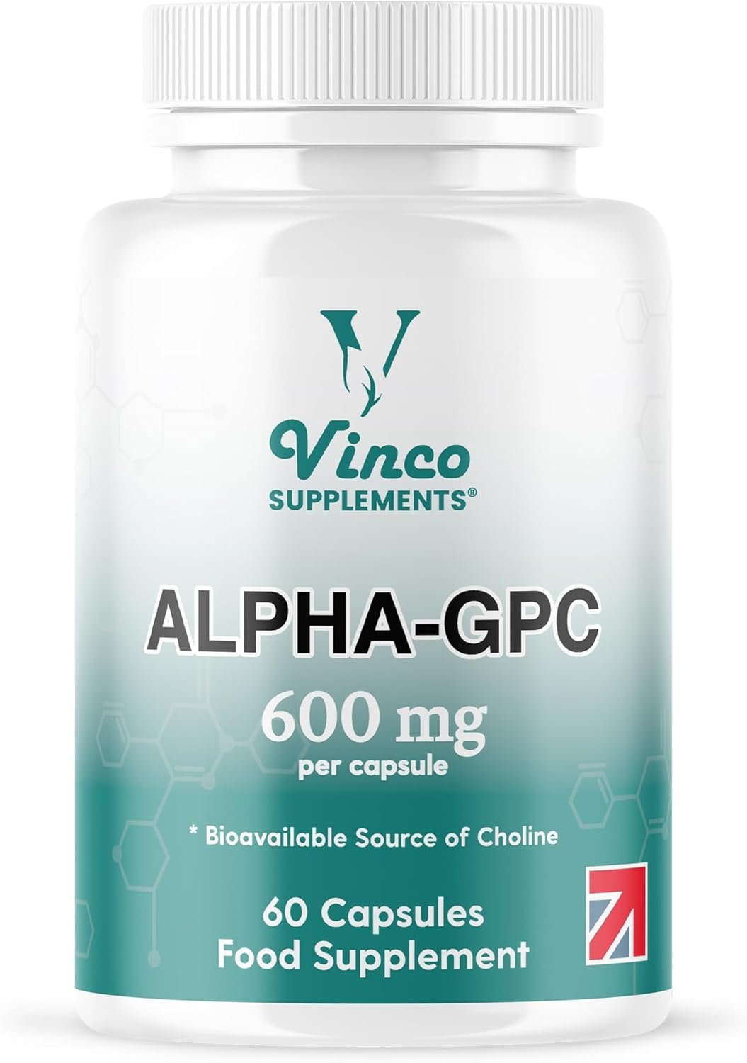 Vinco Alpha GPC 600mg in One Capsule – 60 Capsules = 60 True Servings – Pure Choline Supplement – Nootropic for Brain Support, Focus, Memory, Motivation & Energy – Alpha GPC Rich – Made in The UK