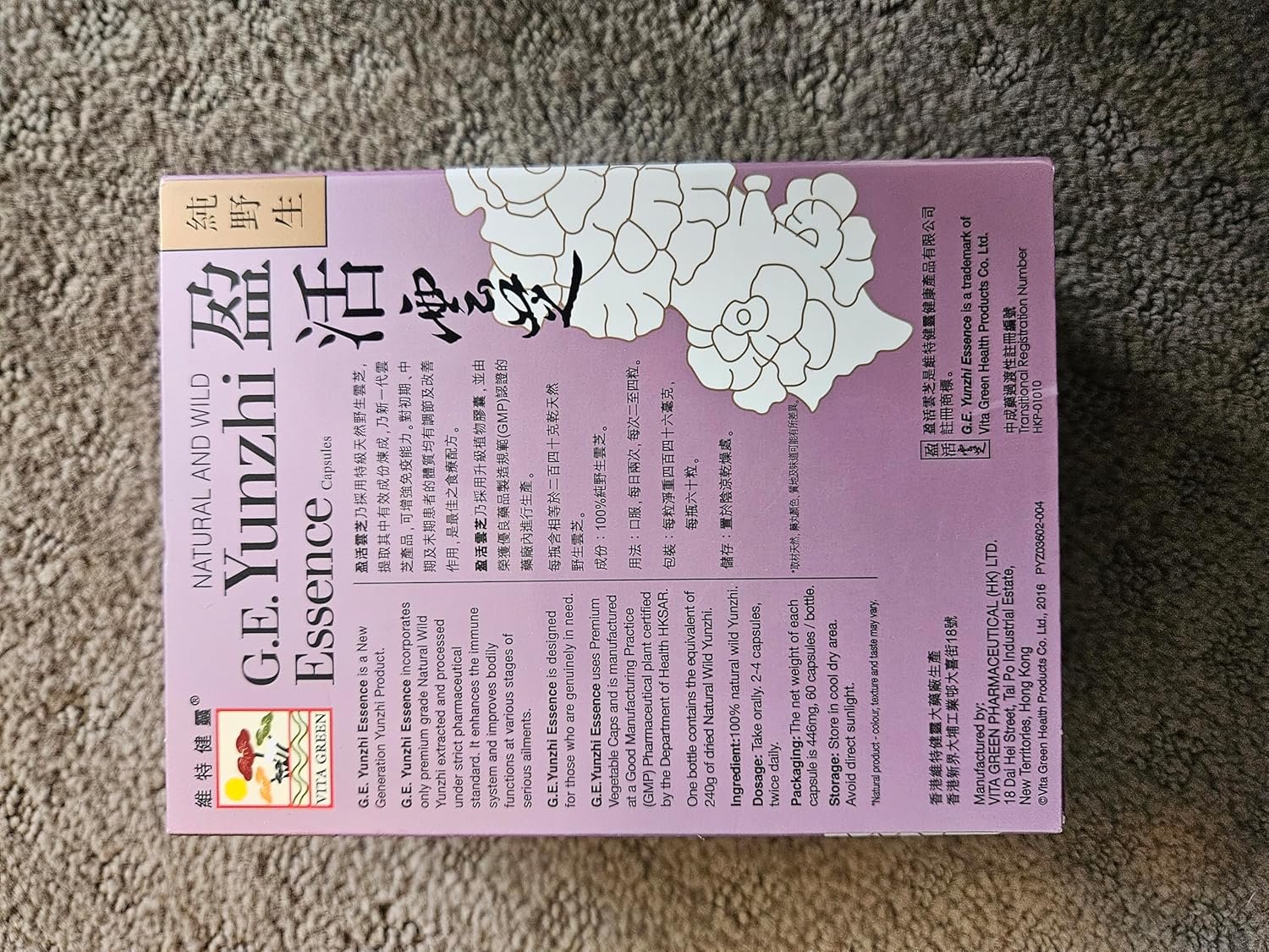 Vita Green Yunzhi Essence Natural Wild Immune Defense Energy Booster Health Support – 360 Capsules