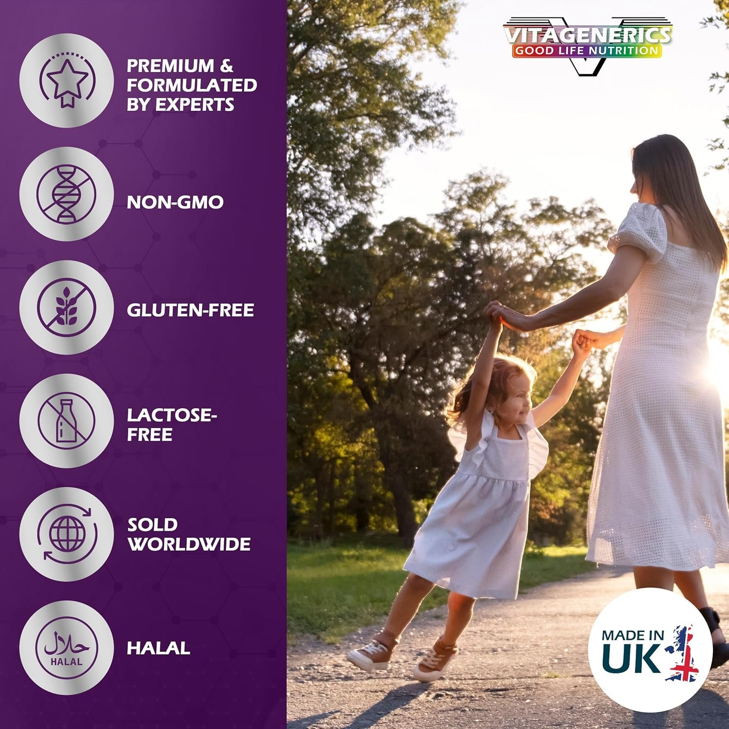 🌍 High-Quality Ingredients, No Compromises – All VITAGENERICS products are manufactured under strict quality controls in the UK to GMP standards and BRC Certified. We use premium ingredients and easy to swallow tablets & capsules, formulated specifically to be taken with food for maximum absorption.