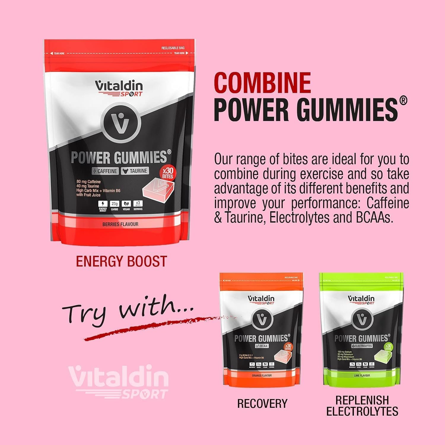 ✔ POWER GUMMIES CAFFEINE & TAURINE BY VITALDIN SPORT: Energy gummies formulated with a mix of high-quality carbohydrates, caffeine, taurine, vitamin B6 and fruit juice. Gummies specially developed for athletes seeking to improve their performance during competitions, training sessions or medium and high intensity exercises.