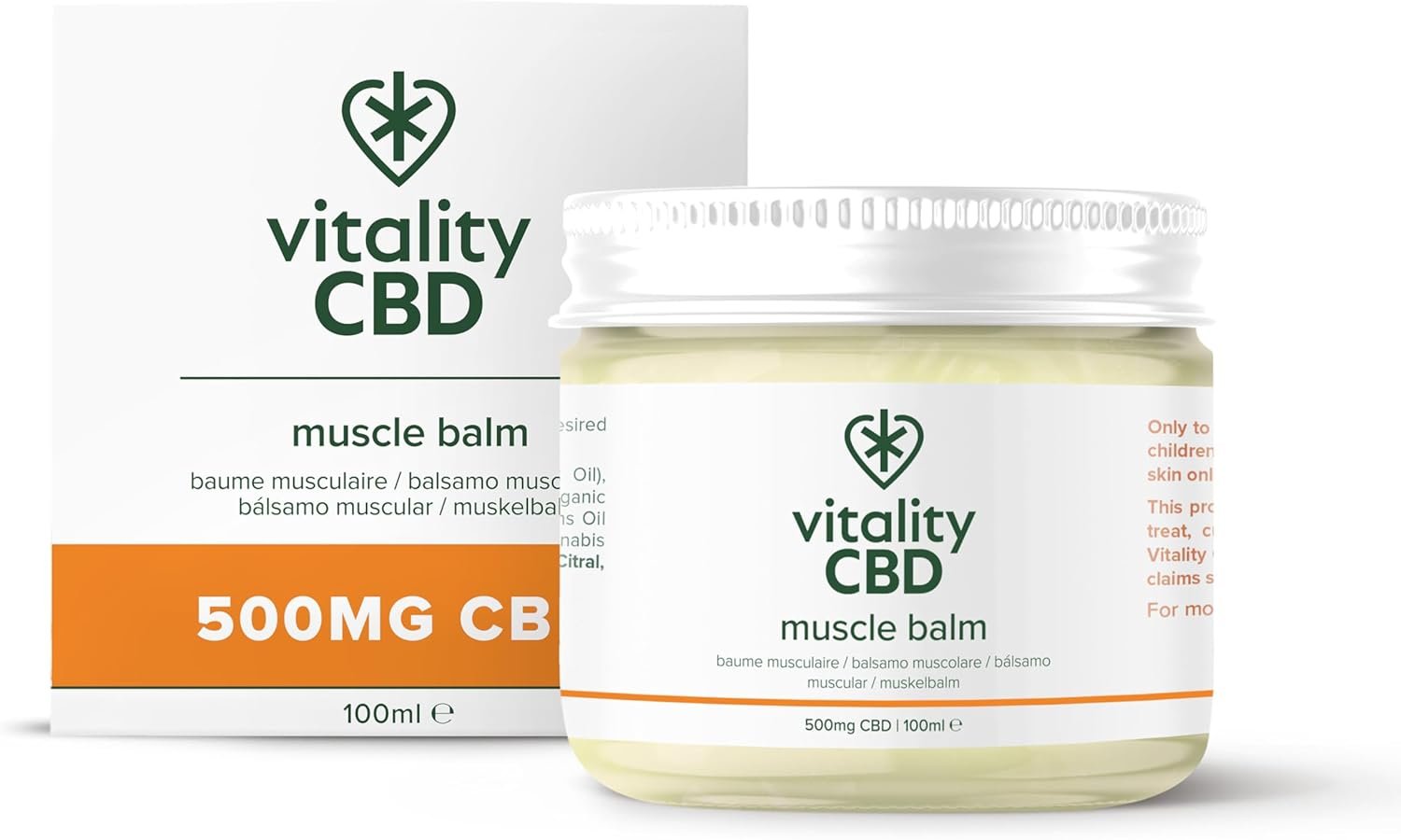 Vitality CBD Muscle Balm, High Strength 500mg of CBD, Natural, 100 ml – Improved Formula, NO THC