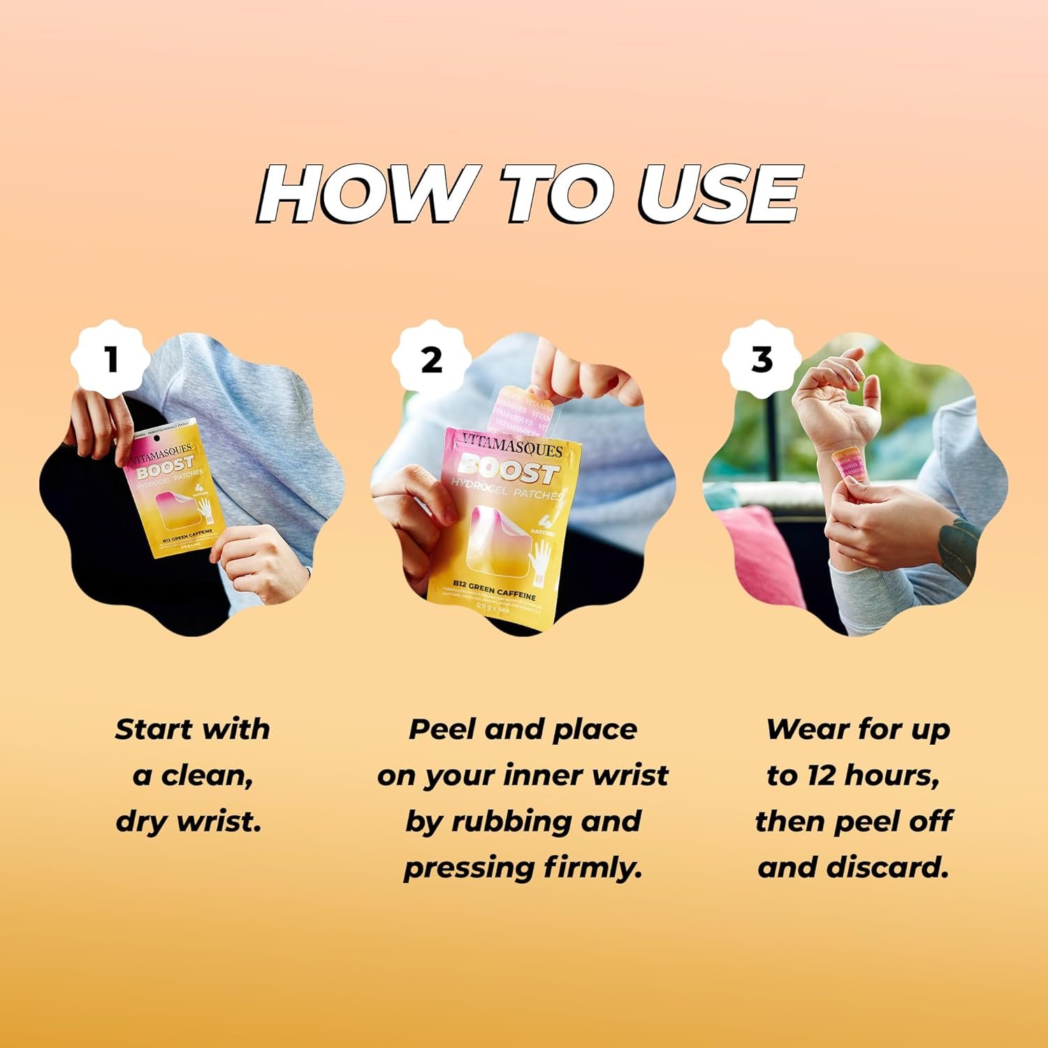 Vitamasques Energy Patches, Boostme Wellness Hydrogel Patch (3-Pack) – B12 Vitamin Patches for Women & Men, Focus Patches for Adults – Cruelty-Free, Gluten-Free, & Filler-Free Caffeine Patches