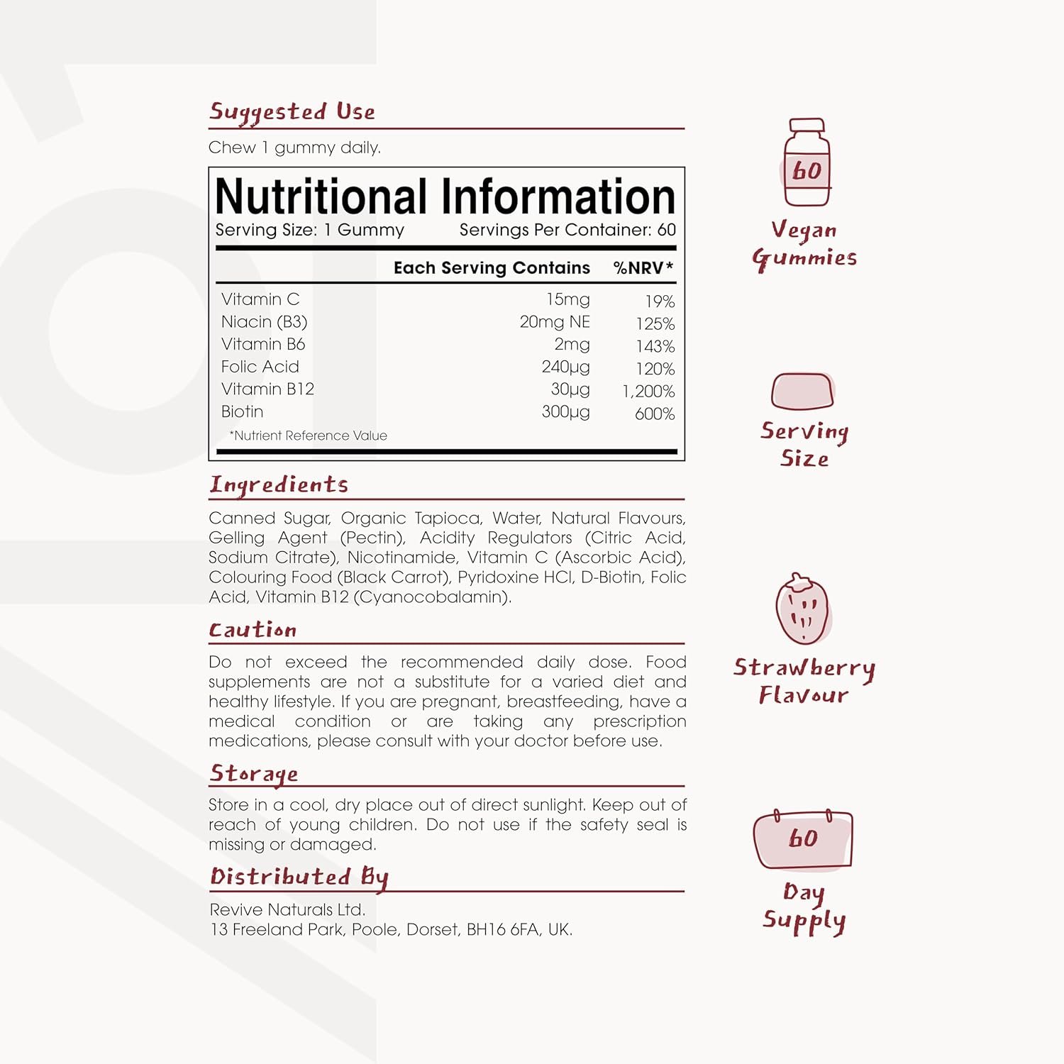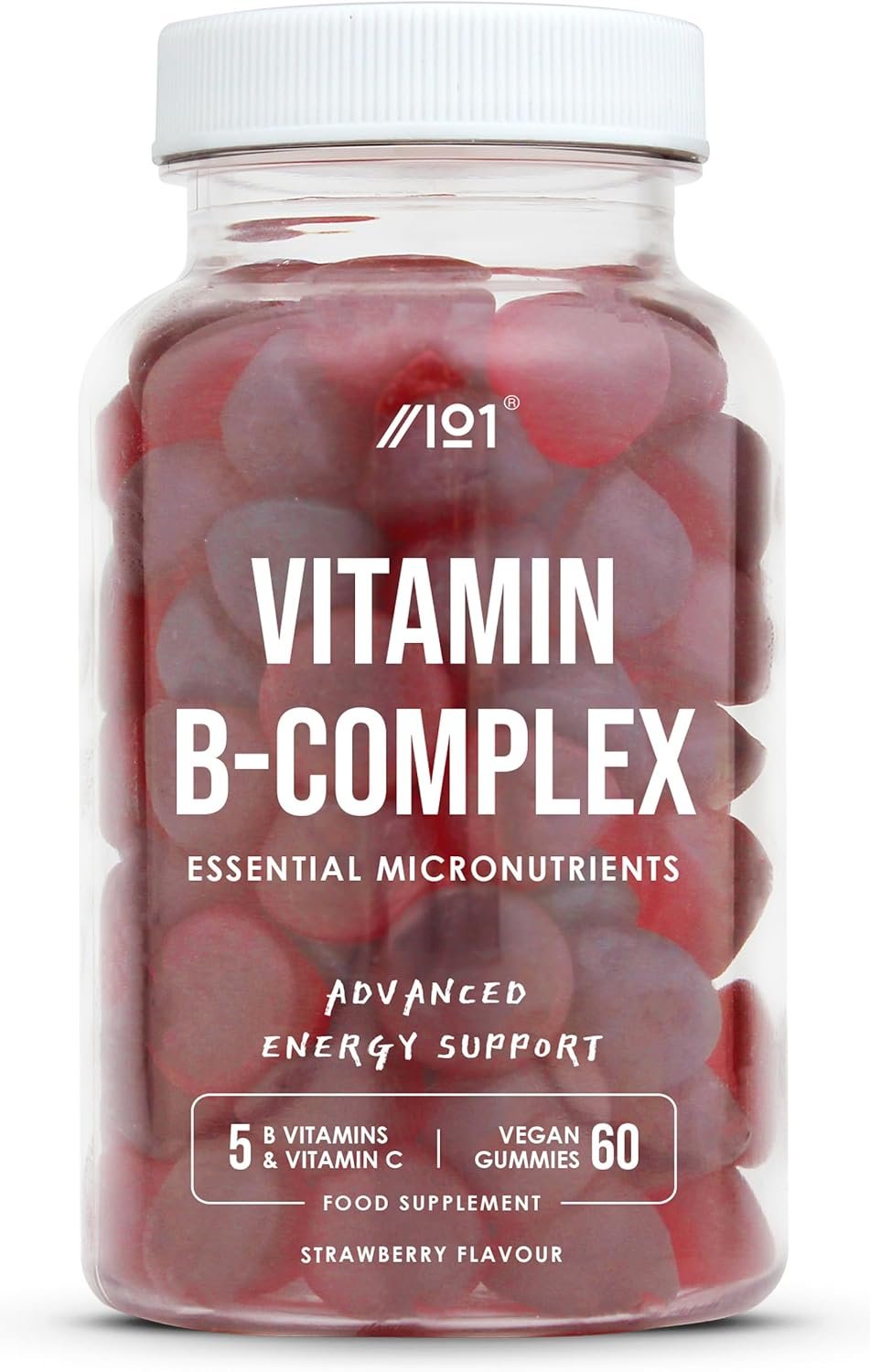 Vitamin B Complex Gummies – 5 Essential B Vitamins & Vitamin C – 60 Vegan Gummies – Strawberry Flavour – by Alpha01