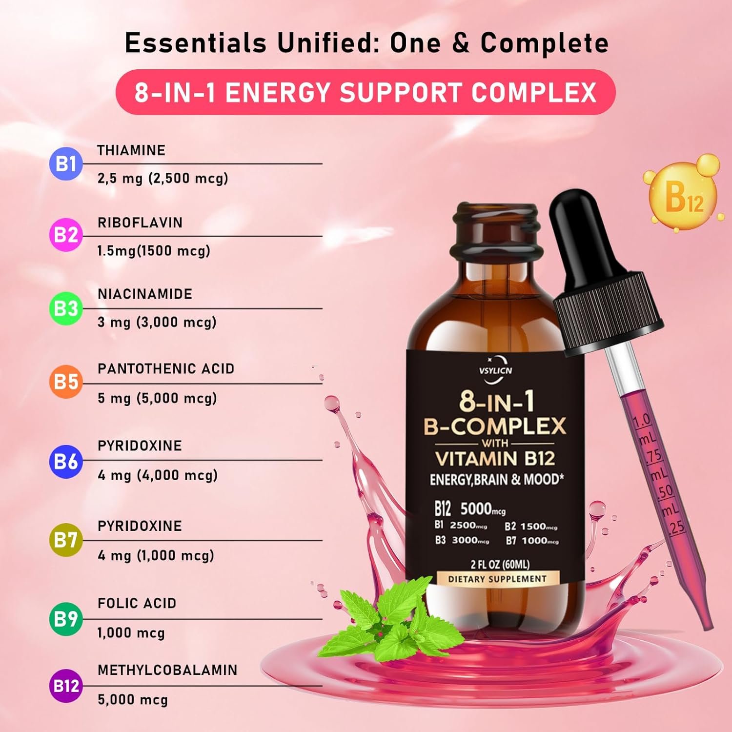 ✓ HIGH-STRENGTH LIQUID B12: FAST-ACTING SUBLINGUAL DROPS – B12 drops are taken sublingually (under the tongue), bypassing the digestive system for direct absorption into the bloodstream. Each 60ml bottle offers over 60 servings, a full 2-month supply