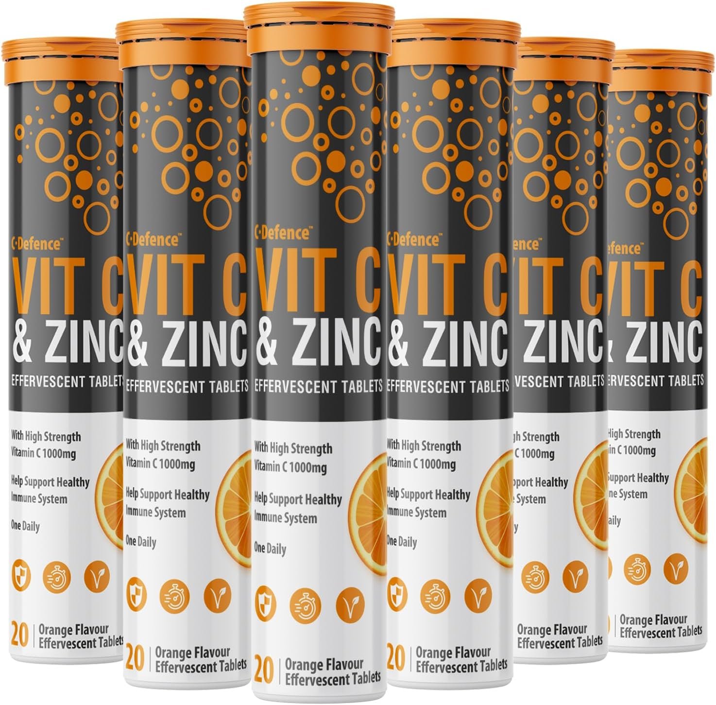 Vitamin C 1000mg & Zinc 15mg Orange Flavour Effervescent Tablets by Club Vits (6 Tubes of 20 Tablets)