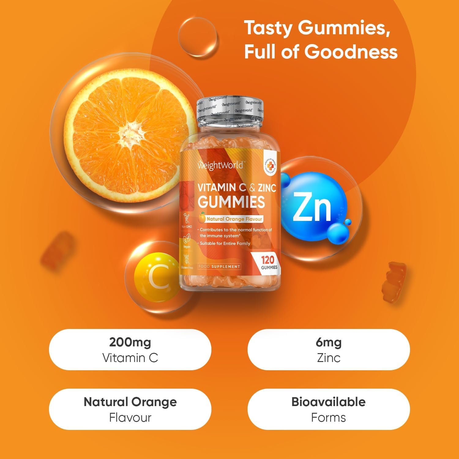 DELICIOUS NATURAL ORANGE FLAVOUR: WeightWorld’s Vitamin C with Zinc Gummies offer a delightful, natural orange flavour that makes daily intake feel like a treat rather than a task. With their tempting, easy-to-chew texture, these Zinc Vitamin C gummies offer a simple way to add essential nutrients to any lifestyle, without the need for water. Just take 2 gummies a day for an enjoyable experience!