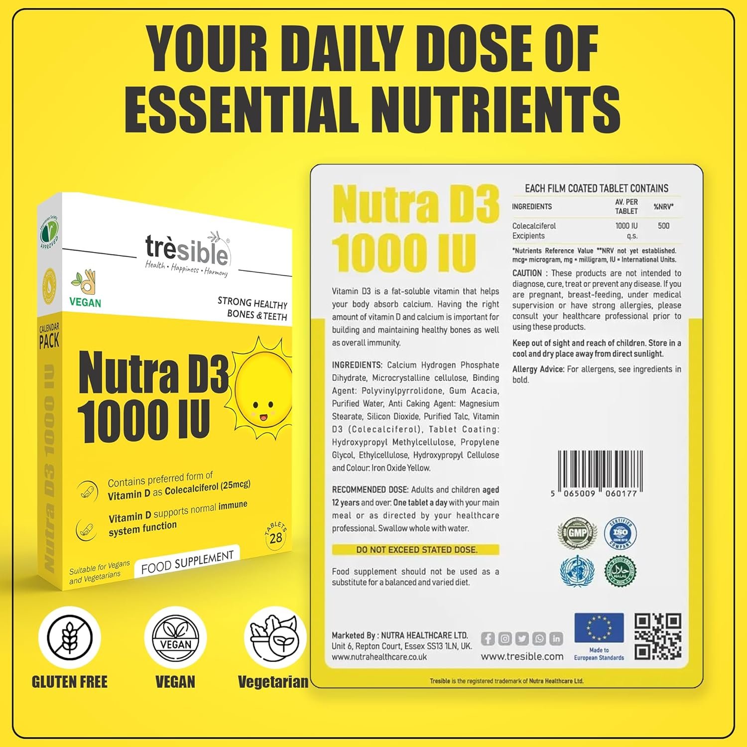Vitamin D vegan tablets are designed to support overall health and well-being. This best Vitamin D supplement is ideal for individuals at risk of Vitamin D 1000 IU deficiency, including those living in areas with limited sunlight exposure, the elderly and people who may not get enough vitamin D through their diet. With 1000 IU of Vitamin D3 (Colecalciferol) per tablet, d3 supplement plays a vital role in maintaining healthy bones and teeth, supporting muscle growth and development and boosting the immune system. D vitamin helps the body absorb essential nutrients like calcium and phosphorus, contributing to overall skeletal and cardiovascular health. Additionally, Vitamin D supplements for women support mental health, making it an excellent choice for individuals managing stress, mood swings or fatigue. Vitamin D. tablets are suitable for a wide range of users. Vitamina D is ideal for vegans, vegetarians and those with gluten sensitivities, as the product is completely gluten-free, halal and free from additives. Parents can also use Vitamin D supplement for their children aged 12 years and above, promoting healthy bone growth and a strong immune system. Vitamin D 3 supplement is perfect for those seeking a convenient, daily solution for their health needs. Vitamin D vegetarian is easy to use, with just 1 tablet to be taken daily with or after a main meal, making it a hassle-free addition to any health regimen. Whether you are seeking to maintain bone health, improve your mood or support your immune system, D3 vitamin provides a versatile and reliable supplement. Vit D vitamins 1000 IU is manufactured to the highest standards, being GMP and ISO certified. This Vitamin D adults tablet ensures that the Vitamina D3 tablet is of the highest quality and safety. Whether you’re dealing with a vitamin D deficiency or simply looking to improve your overall health, it offers a safe, effective and easy way to meet your vitamin D needs.
