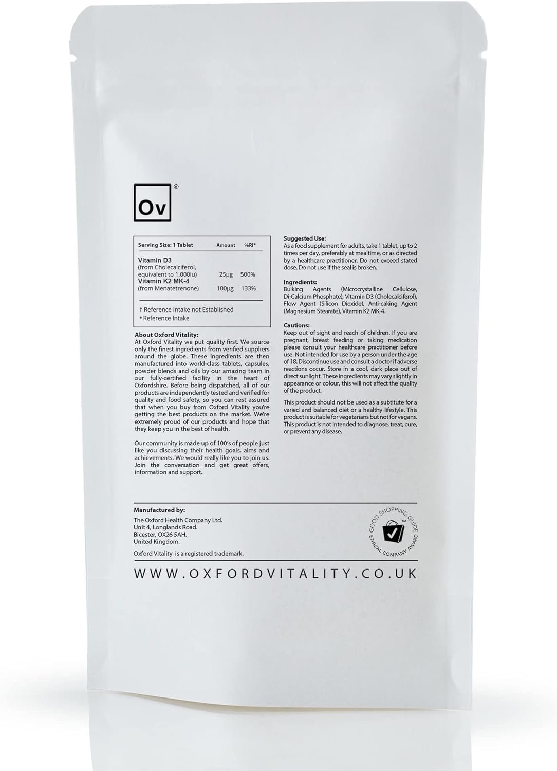 Vitamin D3 1000iu & K2 MK4 Tablets | Supplements for Bone and Muscle Health | Oxford Vitality