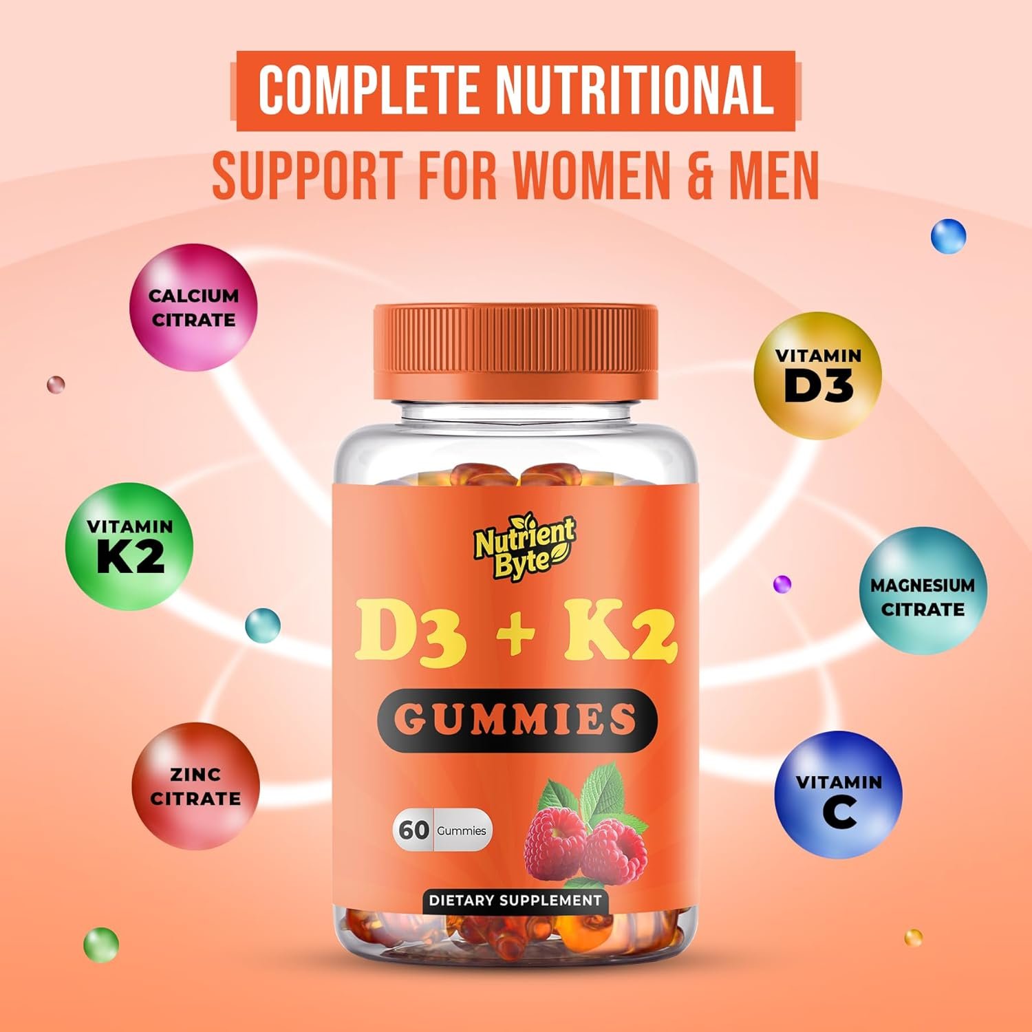 Vitamin D3 K2 Gummies – 4000 IU D3 + 100 mcg K Blend – Immune & Bone Support – Vegan, Non-GMO & Gluten-Free – 60 Berry-Flavored Gummies for Adults & Childern