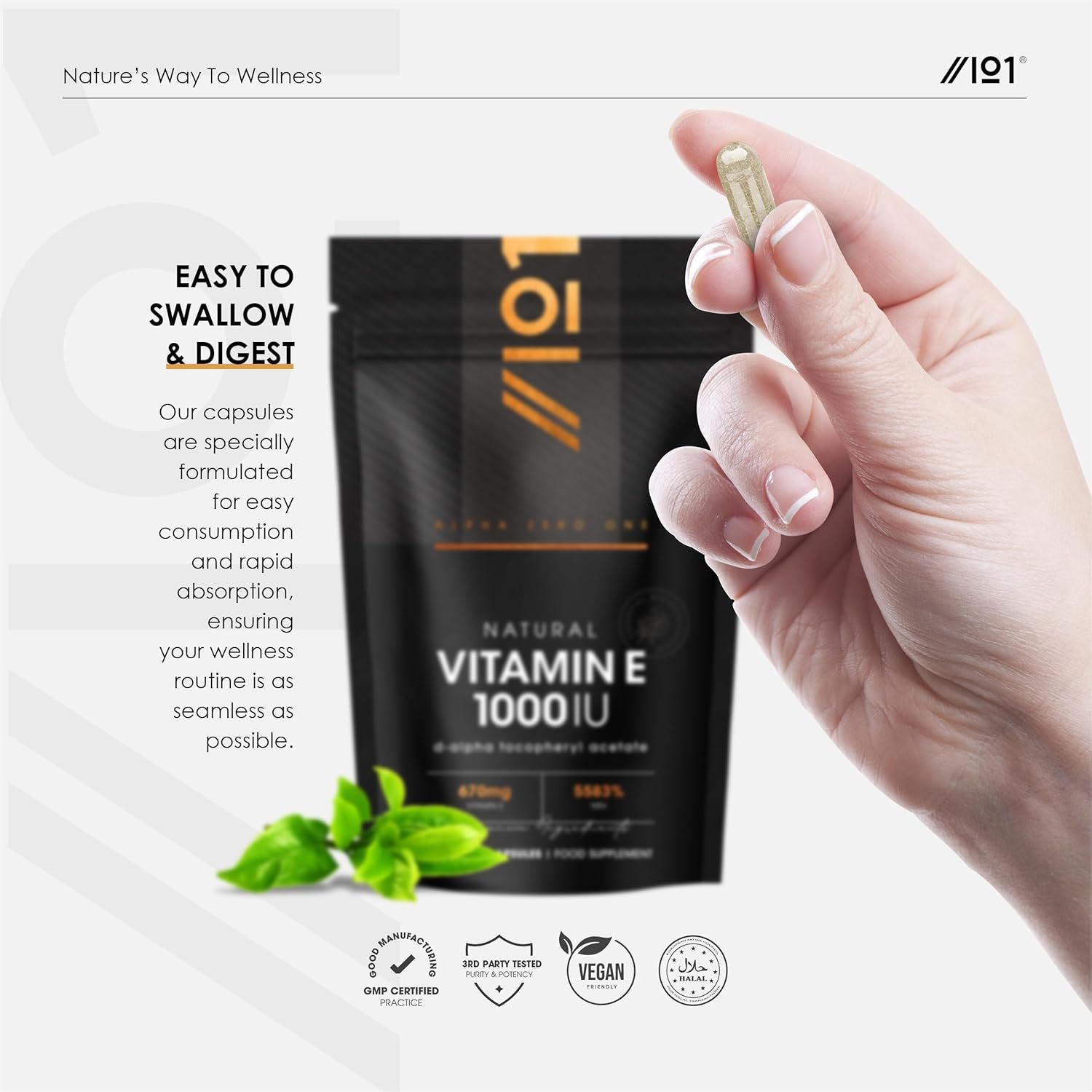 ✔ HIGH-POTENCY FORMULA: Each capsule delivers 1000IU of natural Vitamin E, ensuring maximum effectiveness and quality.