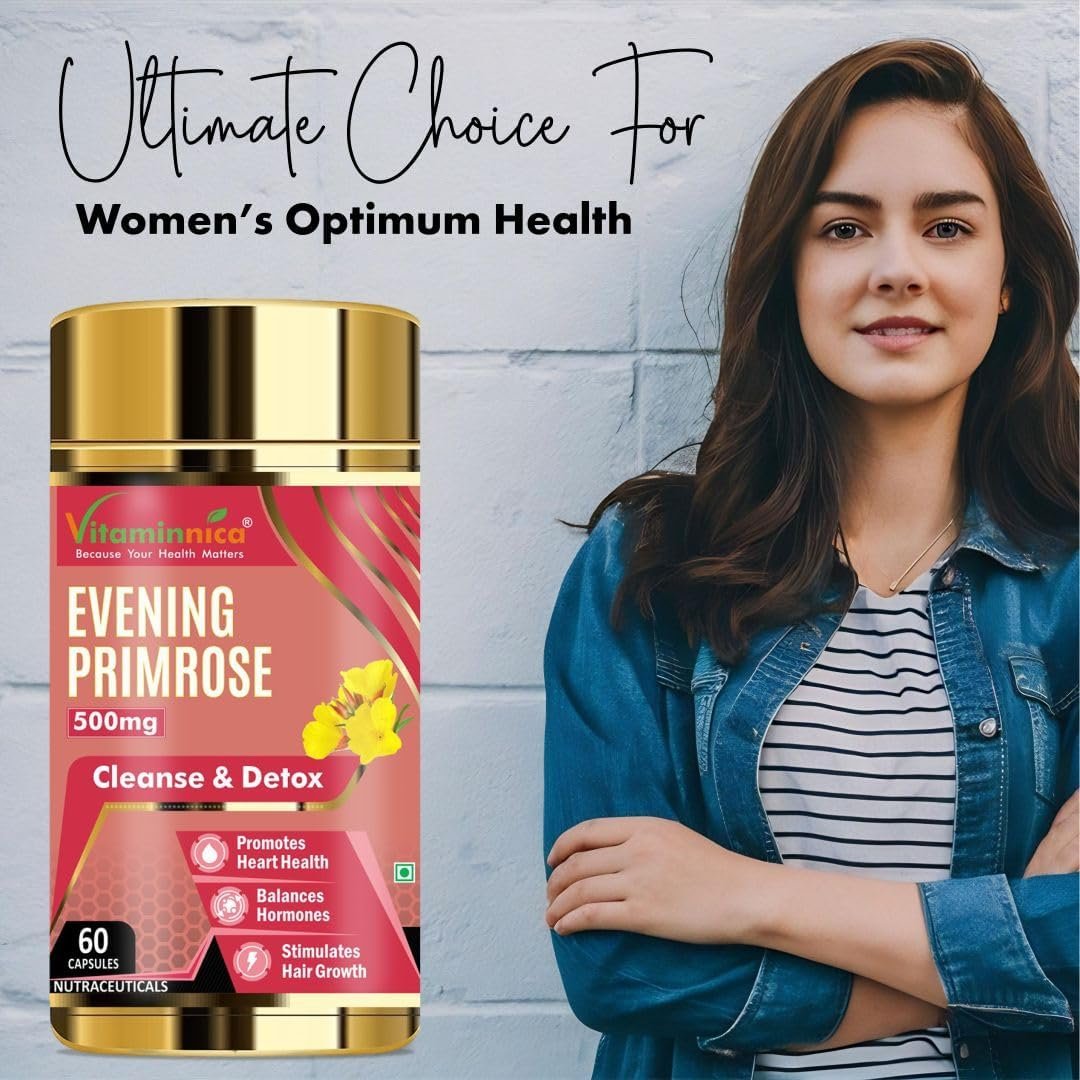 Experience the nourishing benefits of Evening Primrose Oil and embrace vitality from within with Vitaminnica Capsules.