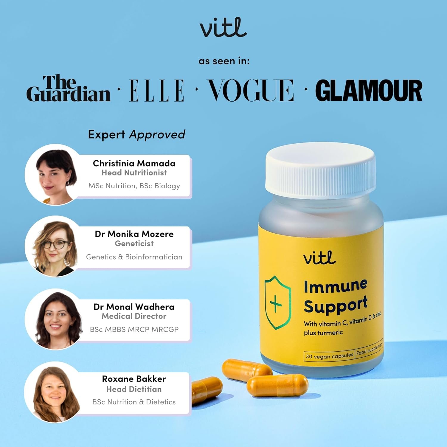 Vitl Immune Support Supplement – 30 Vegan Capsules – with Vitamin D, Vitamin C, Folate, Zinc, Turmeric & Elderberry Extracts – 1 Month Supply