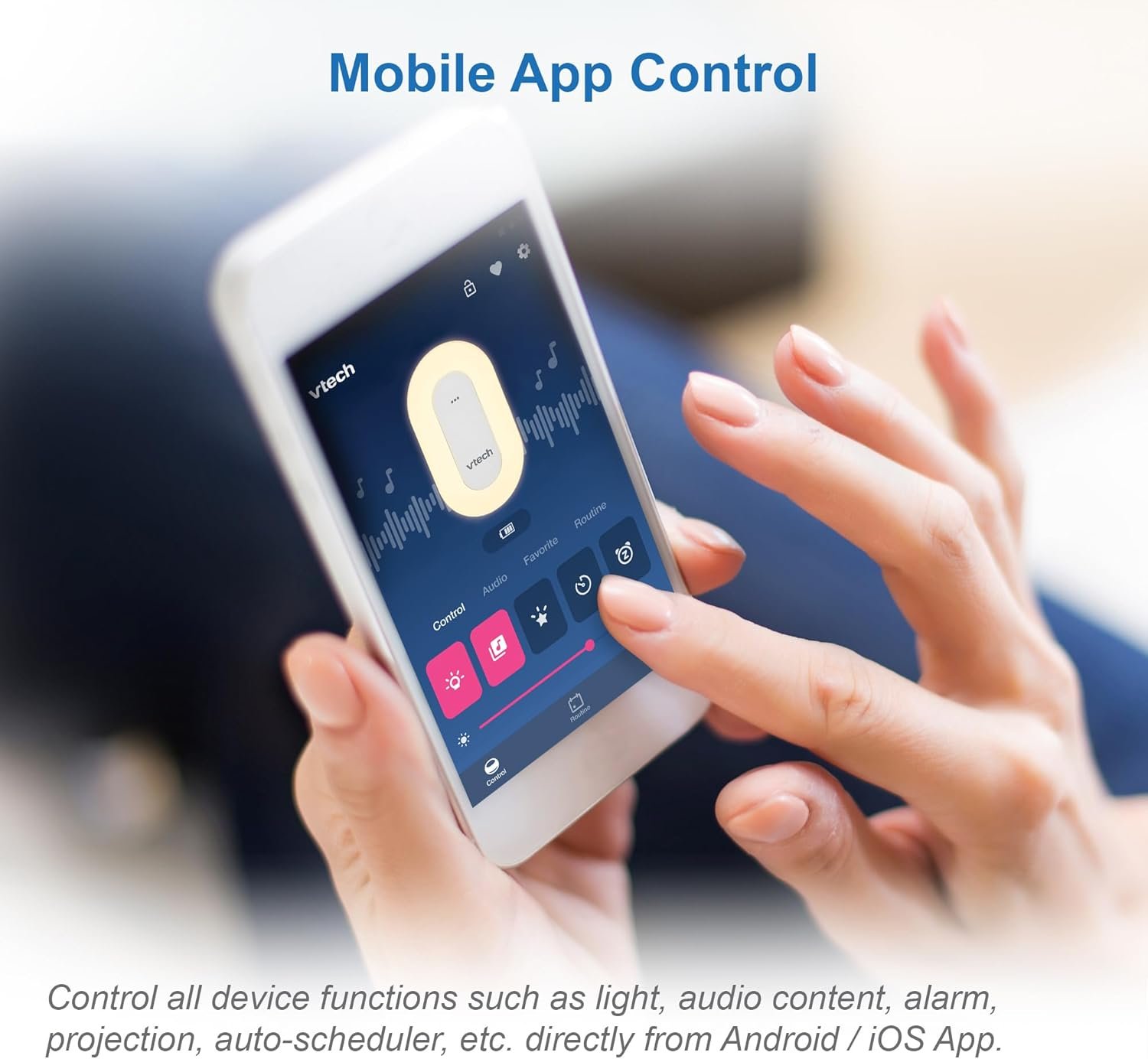 [Sleep Training Scheduler & Sleep Tips Content from Experts] – VTech Soother app enables you to create sleep routine schedules which control the light, sound and projection features of soother to make your child understand and get habituated to sleeping routines. The app also provides tips from experts.